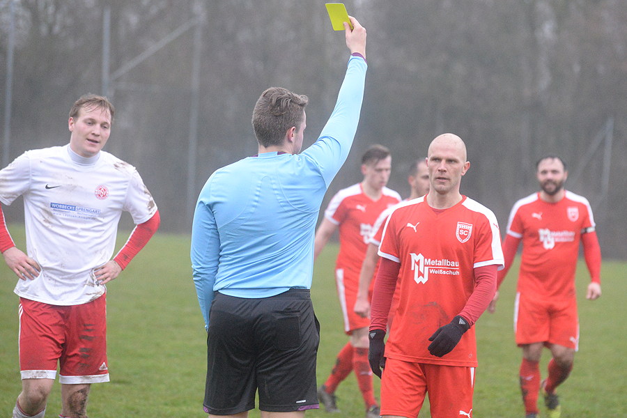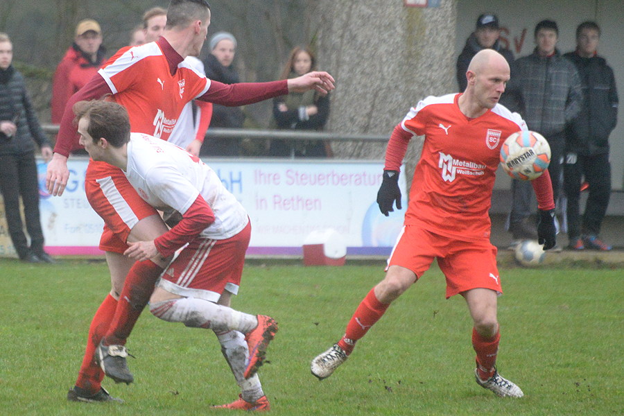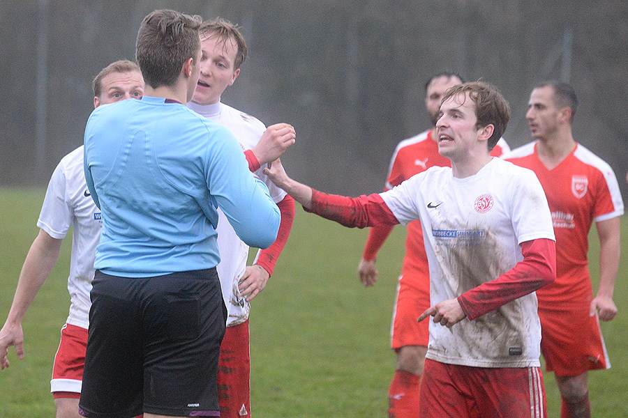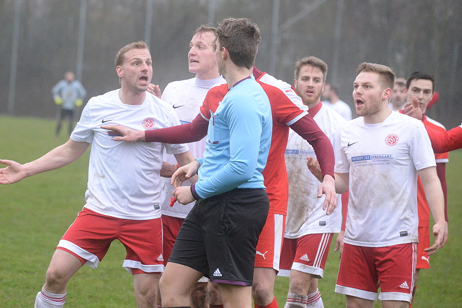 Die SCer vergaben bereits nach sechs Spielminuten die Führung, als Kevin Macke aus etwa acht Metern das Tor nicht traf. Dafür setzte Arnfried De Vries den von Maher Ghazzi an Onat Icguel verursachten Strafstoß sicher ins Netz (35.). Auch hier zeigten sich die BSVer mit der Entscheidung des Unparteiischen nicht einverstanden, ihrer Auffassung nach war die Regelwidrigkeit außerhalb der Strafraumes.