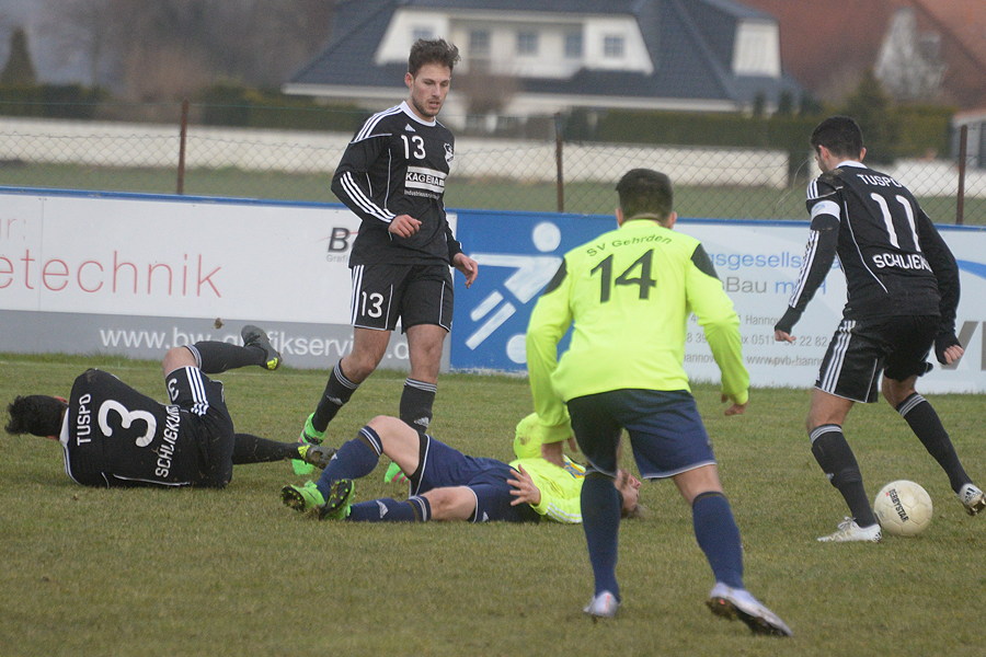 1:2 (1:2) gegen den SV Gehrden – Bezirksligist TuSpo Schliekum startet nach der Winterpause mit einer Niederlage.. Es will einfach nichts gelingen: TuSpo Schliekum zeigte heute auf heimischer Sportanlage gegen den kompakten SV Gehrden durchaus eine ansprechende Leistung, ist aber wieder leer ausgegangen. Der Gast führte nach 13 Spielminuten 1:0, ein Eigentor der Gehrdener brachte dem Gastgeber das 1:1 (21.) ein, aber noch vor dem Seitenwechsel traf der SV Gehrden per Kopfball nach Freistoßflanke zum 1:2.