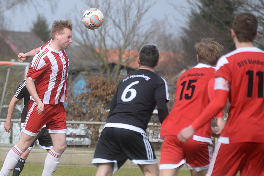 In der ersten Halbzeit waren die Gäste aus Harenberg die spielstärkere Mannschaft. Nach zehn Minuten resultierte aus einem Stellungsfehler in der Gleidinger Defensive das Tor des Tages. Mit zunehmender Spieldauer wurden die Gastgeber immer stärker, spätestens nach dem Seitenwechsel war der BSV mindestens ebenbürtig. Zwei Minuten vor Schluss hatte Steven Kahl die größte Chance zum Ausgleich, doch sein Schuss aus kurzer Distanz wurde vom Gäste-Torhüter glänzend pariert.