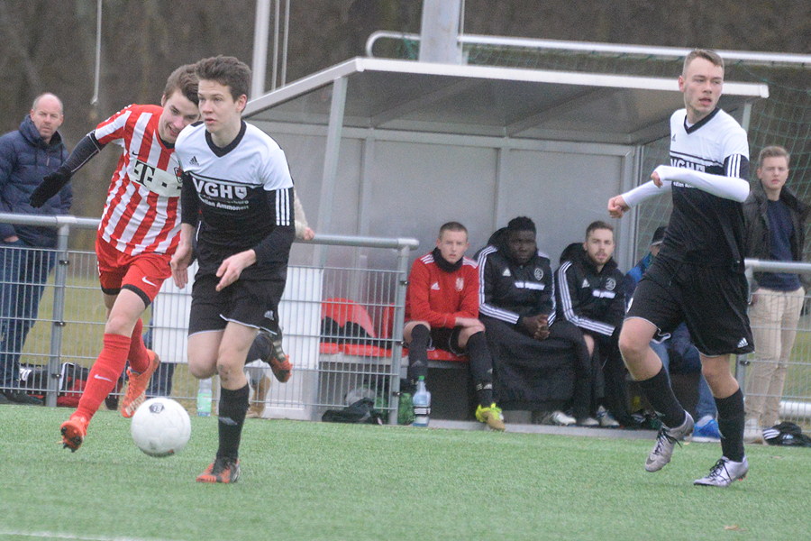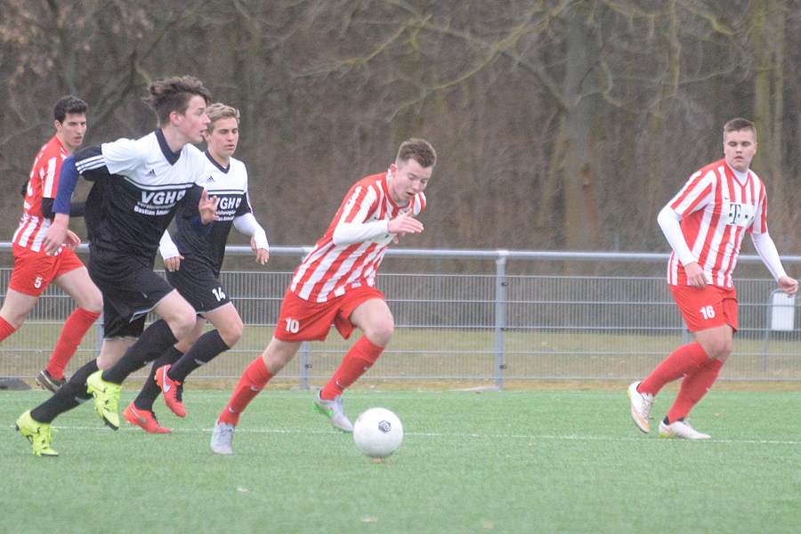 In der Landesliga der B-Junioren setzte sich die JSG Grasdorf/Wülfel 4:2 (3:2) beim TSV Limmer durch. Das 1:0 (12.) für die TSVer glich Sascha Schlothauer im Gegenzug aus (13.) und danach trafen erneut Schlothauer (23.) und Andreas Kallinich (27.) zur 3:1-Führung, doch noch vor der Halbzeit kam der Gegner zu seinem zweiten Tor (29.). Für die Entscheidung sorgte gleich nach dem Seitenwechsel Jim-Lopez Munoz mit seinem Tor zum 4:2 (43.), es war ein direkter Freistoß beinahe von der Mittellinie. In der 2. Halbzeit kontrollierten die Gäste die Partie. "Das war kein gutes Spiel, der schlechte Sportplatz ließ nichts Besseres zu", lautet das Fazit von Sven Iwan, Trainer der JSG Grasdorf/Wülfel.