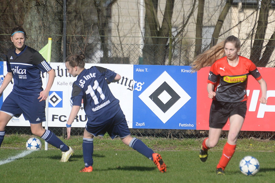 Einen knappen, aber immens wichtigen 2:1-Heimerfolg konnte der FC Ruthe in der Bezirksliga gegen den SC Inter Holzhausen für sich verbuchen. In einer letztlich umkämpften Partie erwischten die Rutherinnen einen Traumstart und führten nach Toren von Jill Hornbostel und Anna Titze nach zehn Minuten 2:0. Auch danach blieben die Rot-Weißen am Drücker und hätten sogar nachlegen können.