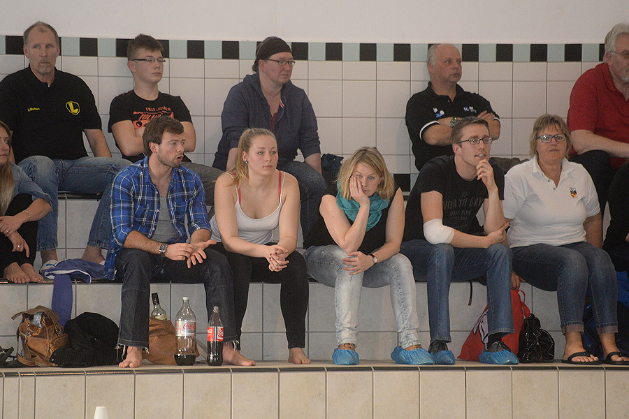 Angenommen, die SpVg Laatzen würde ihre restlichen Spiele der Saison 2015/2016 in der 2. Liga Nord gewinnen – dann wäre die Mannschaft um Trainer Carsten Stegen Nordmeister und würde an der Qualifikationsrunde zur Deutschen Wasserball-Liga, Hauptrunde B, teilnehmen. Heute wurde mit dem 12:9 (4:3, 3:0, 4:3, 1:3)-Heimsieg über Hellas Hildesheim der Grundstein dazu gelegt.. Ganz zufrieden war SpVg-Trainer Carsten Stegen allerdings nicht. "Wir haben zu viele Gegentore bekommen, die nicht sein dürfen", sagte er gleich nach der Schlusssirene. "Einmal hat der Gegner beinahe von der Beckenmitte aus getroffen. Wir haben die Hildesheimer zu oft frei zum Schuss kommen lassen."