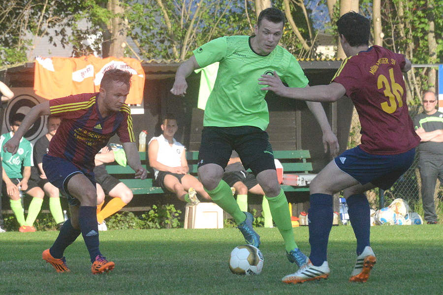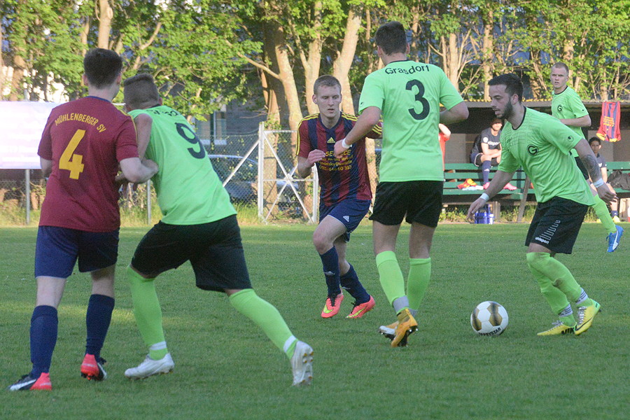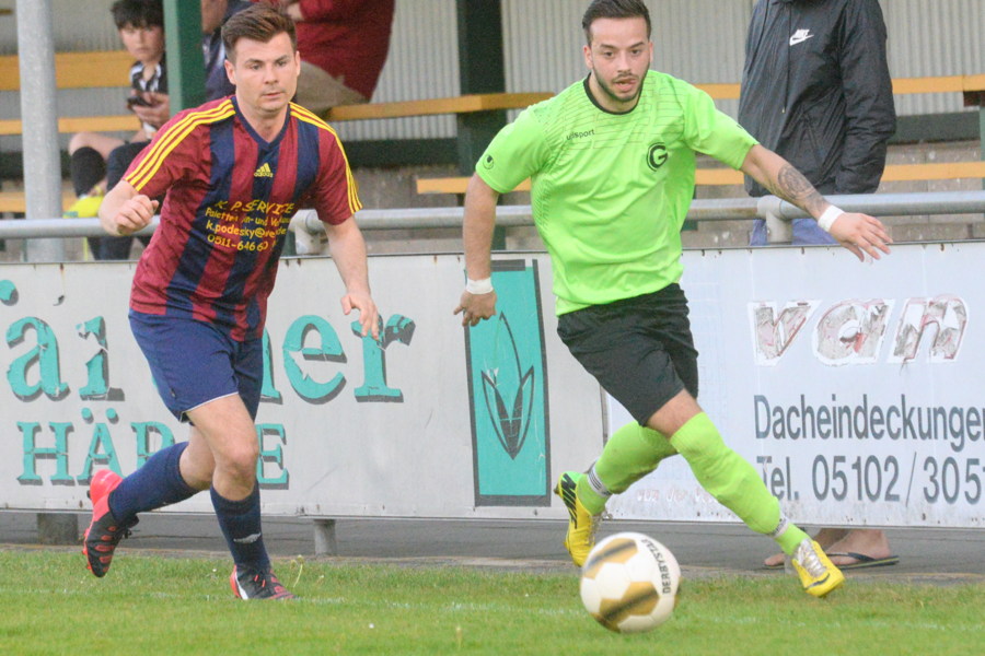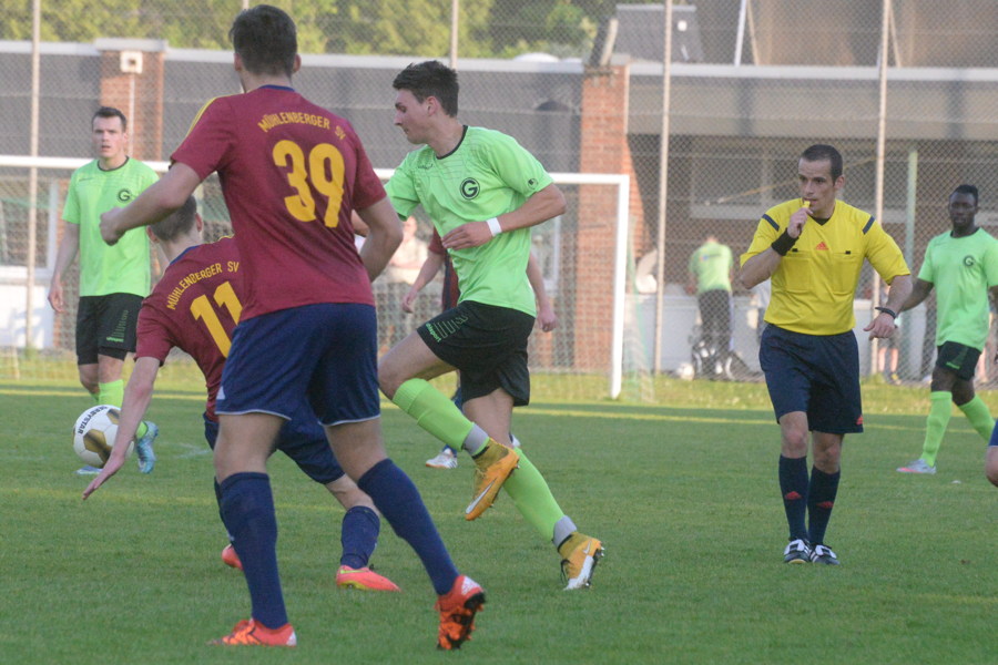 Im ersten Durchgang hatten die Platzherren Ball und Gegner im Griff. Folgerichtig erzielte Carsten Folprecht nach einer Ecke von Abazaj per Kopf das 1:0. Nach einem Abwehrschnitzer von Ramzi Ouro-Tagba kamen die Gäste zum 1:1 – und fortan war der Mühlenberger SV die bessere und vor allem zweikampfstärkere Mannschaft. Nach einem abgefälschten Freistoß von der Seite gingen die Gäste in der 61. Minute in Führung. 15 Minuten später hätte die Vorentscheidung fallen können, doch der Schuss des Mühlenberger Stürmers sprang vom Pfosten zurück ins Feld. So warfen die Gastgeber in den letzten zehn Minuten alles nach vorne – und wurden spät belohnt. Abazaj wurde nach einer Flanke von rechts im Strafrum umgeschubst, der eingewechselte Routinier Jan Hentze verwandelte sicher zum 2:2 ins rechte Eck.