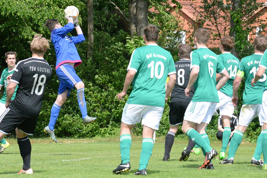 In der Staffel 3 der der Kreisliga steht Sptzenreiter SV Arnum unmittelbar vor dem Gewinn der Staffelmeisterschaft, am letzen Spieltag der Saison 2015/2016 muss nächsten Sonntag nur noch der TSV Groß Munzel auf heimischer Sportanlage besiegt werden.. Die SV Arnum ist nach dem heutigen 5:2-Sieg gegen den TSV Goltern noch einen Sieg von der Meisterschaft entfernt. Im heutigen Heimspiel reichte die ganz starke erste Halbzeit, um den Gegner zu bezwingen. Dabei ließen sich die Gastgeber vom frühen Rückstand per Elfmeter (13.) nicht aus dem Konzept bringen. Björn Graw (15. und 19.), Felix Rademacher (37.) und Lars Jordan (40.) drehten das Ergebnis noch vor der Halbzeitpause auf 4:1. "Damit war die Partie praktisch entschieden", sagte SVA-Trainer Tobias Brinkmann. Nach dem Seitenwechsel nahmen die Platzherren das Tempo deutlich raus. Die Konsequenz war der Anschlusstreffer der Gäste zum 4:2 in der 55. Minute. In der 63. Minute stellte Nick Hieronymus mit seinem Treffer zum 5:2 dann die Weichen endgültig auf Sieg. "Ein absolut verdienter Sieg. Jetzt konzentrieren wir uns voll und ganz auf das letzte Spiel am kommenden Sonntag gegen den TSV Groß Munzel", sagte Brinkmann.