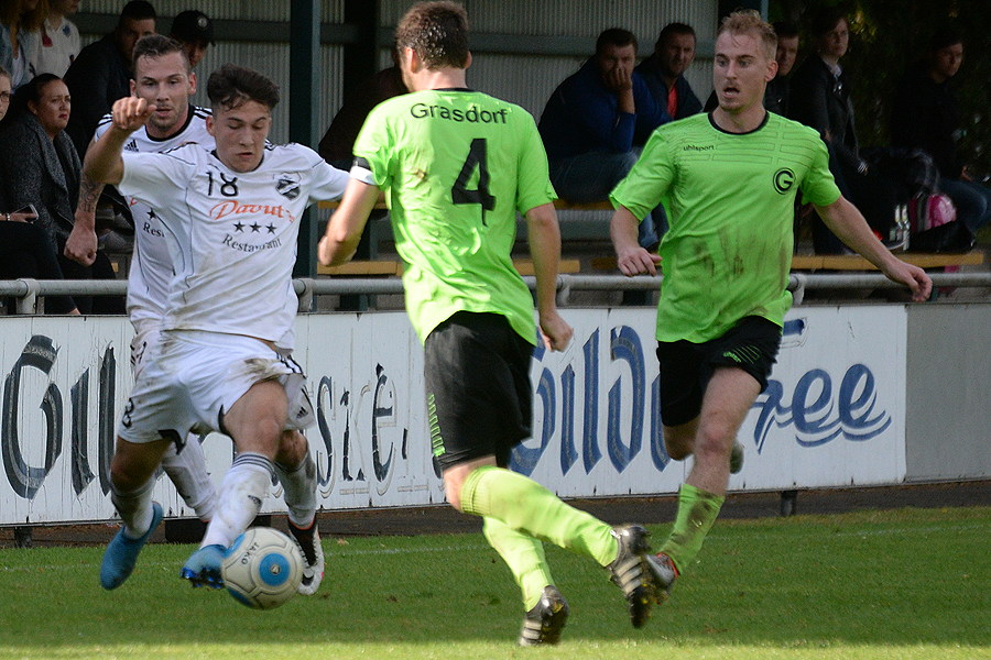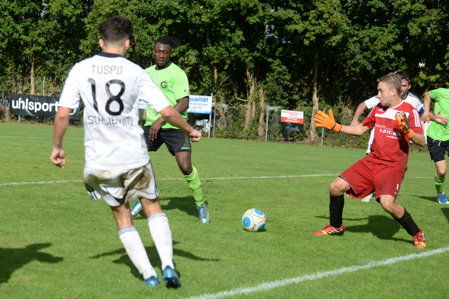 Endlich die sich bietenden Tormöglichkeiten genutzt und in der Abwehr Stabilität gezeigt: das waren heute im Grasdorfer Sportpark an der Ohestraße die Grundlagen für den 4:1 (3:0)-Erfolg des Bezirksligisten TuSpo Schliekum beim SV Germania Grasdorf. Das 0:1 (24.) geht auf das Konto von Gianluca Grupe, Kremtin Berisha (26.) und Kustrim Berisha (45.) sorgten mit ihren Treffern für das beruhigende 3:0 noch vor der Halbzeit. Mit dem 4:0 (64.), Omar Omeirat verwandelte den an Aristide Wayi verursachten Strafstoß sicher, war das Spiel gelaufen. Danach wurde der Vorsprung mehr oder weniger verwaltet, das Anschlusstor der Gastgeber (85.) ärgerte wohl nur noch TuSpo-Torwart Dennis Sniady. "Wieder nicht zu null gespielt", war er kurz nach dem Schlusspfiff offenkundig nicht uneingeschränkt zufrieden.