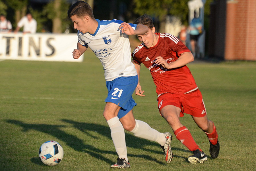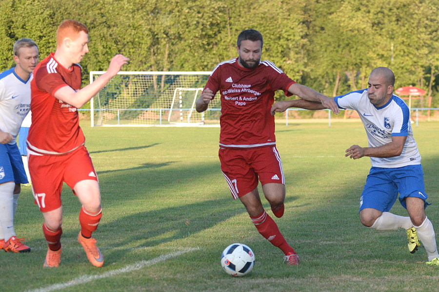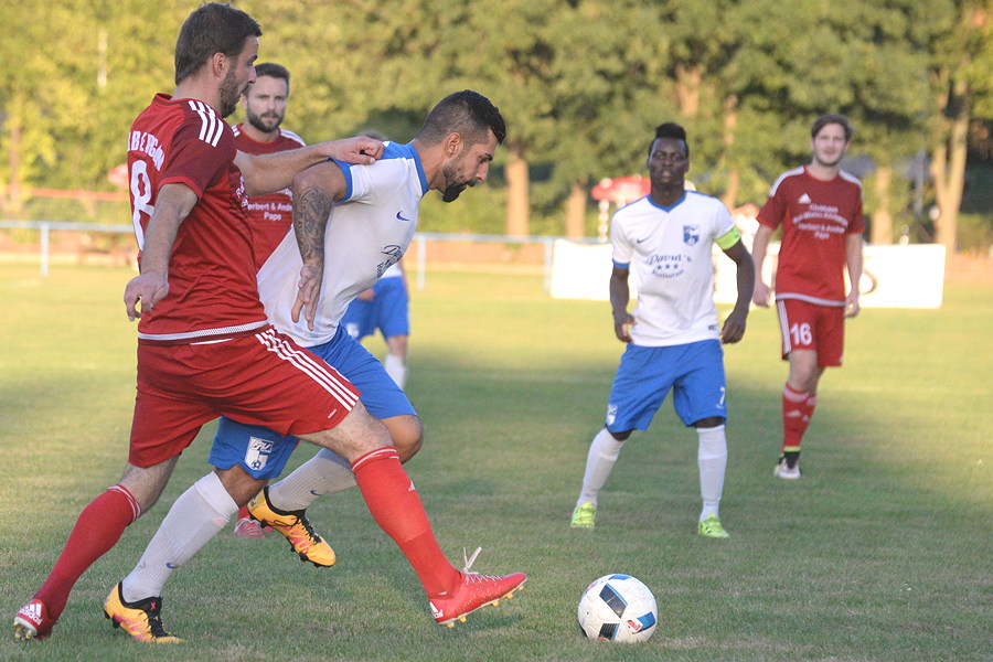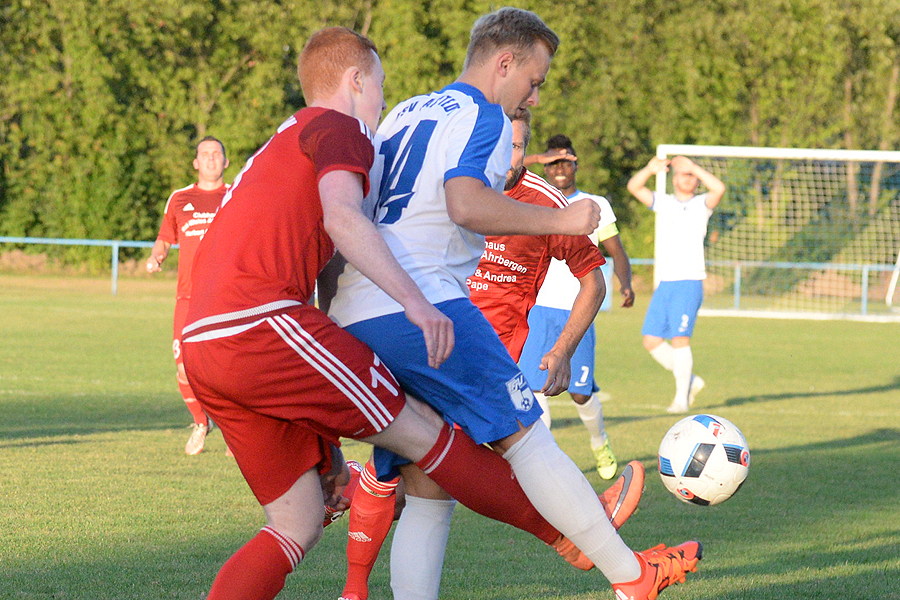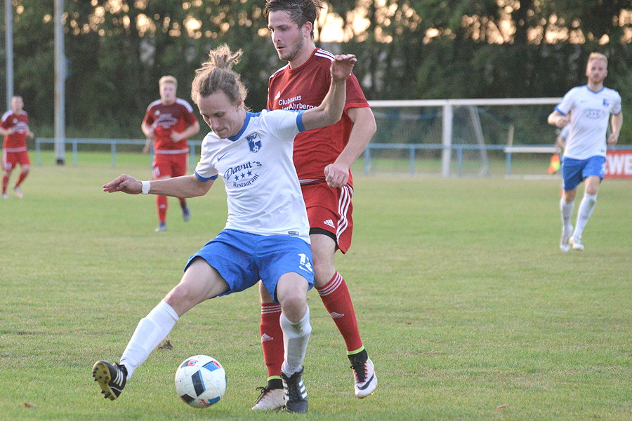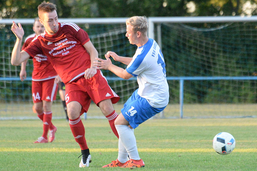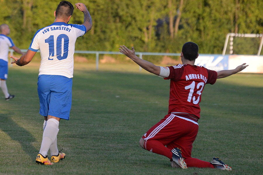 Kreisligist FSV Sarstedt sah heute Abend im FSV-Sportrpark an der Friedrich-Lugwig-Jahn-Straße schon wie der sichere Sieger aus, führte 2:0, musste sich jedoch am Ende mit dem 2:2 gegen Rot-Weiß Ahrbergen begnügen, hat damit den Sprung auf den 2. Tabellenplatz verpasst.. Zunächst tat sich die favorisierte FSV Sarstedt gegen den Nachbarn aus Ahrbergen schwer, bestimmte zwar über weite Strecken das Geschehen, kam jedoch nicht zu nennenswerten Tormöglichkeiten. Und auch das 1:0 (34.) durch Arthur Narloch entsprang keiner klaren Torchance, erst ein krasser Ballverlust der Rot-Weißen und zudem unter Mithilfe des Torhüters traf der FSVer im zweiten Versuch. Gleich nach dem Seitenwechsel schien die FSV Sarstedt alles zu ihren Gunsten klar zu machen, Arthur Narloch traf zum 2:0 (49.). Das Anschlusstor der Rot-Weißen fiel aus dem Nichts, Tom Dammeyer nahm den Freistoß aus dem Halbfeld an und schoss volley ins lange Eck (61.). Jetzt kamen die Rot-Weißen besser ins Spiel, und die Folge war das 2:2 (82.) durch Dustin Hubrich – doch nur eine Minute später bekam der Gastgeber von Schiedsrichter Karsten Gottschild einen umstrittenen Strafstoß zugesprochen, den Rot-Weiß-Torwart Felix Kittke an Soydan Beyazkilic verursacht haben soll. Aber Monir Omeirat traf nur den Torpfosten.