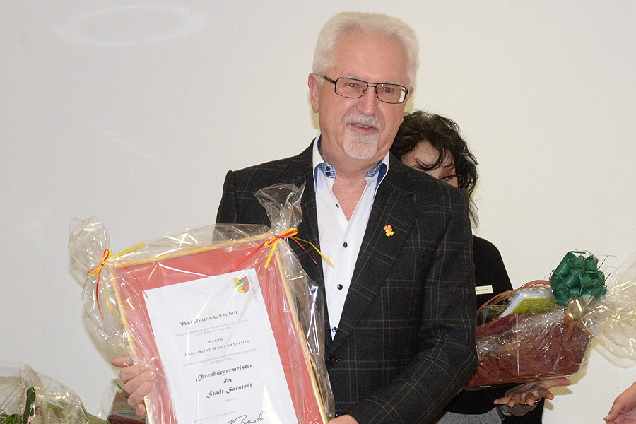 Heike Brennecke, Bürgermeisterin der Stadt Sarstedt, hat gestern Abend im Sitzungssaal des Rathauses ihren Vorgänger im Amt, Karl-Heinz Wondratschek, sowie vier weitere nach der Kommunalwahl am 11. September ausgeschiedene Ratsmitglieder zum Ehrenbürgermeister, zu Ehrenratsfrauen beziehungsweise Ehrenratsherren ernannt. Diesen Ernennungen war der Ratsbeschluss vom 2. November vorausgegangen.. "In Sarstedt ist viel bewegt worden." Das sagte gestern Abend im kurzen Rückblick unter anderem Karl-Heinz Wondratschek. Er war 18 Jahre, von 1996 bis 2014, hauptamtlicher Bürgermeister der Stadt Sarstedt. "Karl-Heinz Wondratschek hat richtungsweisende Bedingungen für die Amtsführung hinterlassen", sagte Heike Brennecke. "Bürgermeister zu sein bedeutet, so manchen Tag rund um die Uhr einsatzbereit zu sein und das siebenTage die Woche." Sie bescheinigt ihrem Amtsvorgänger großes Engagement für die Stadt Sarstedt. Wondratschek selbst sagte, er habe hier und heute mit großer Freude zugehört und es sei ein schönes Gefühl, in seiner Heimatstadt zum Ehrenbürgermeister ernannt zu werden. "Wir haben in meiner Amtszeit in Sarstedt gemeinsam viel erreicht, aber ohne die Mitarbeiter der Stadtverwaltung und dem Rat der Stadt wäre das nicht möglich gewesen. Ich als Bürgermeister habe das alles hauptberuflich gemacht, die Ratsmitglieder dagegen ehrenamtlich. Das ist sensationell." Leider sei es schade, dass die Arbeit der Komunalpolitiker in der Öffentlichkeit nicht so gewürdigt werde, wie es sein sollte.