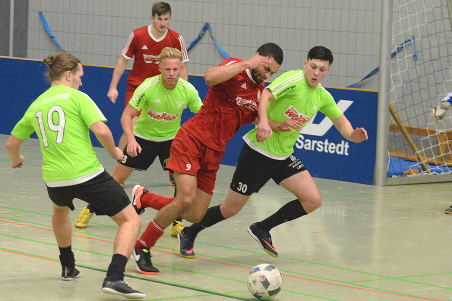 Gastgeber FSV Sarstedt unterlag in der Gruppenrunde dem OSV Hannover 0:2 und dem FC Concordia Hildesheim 0:1, damit waren die Kicker um Trainer Fabian Bodenstedt aus dem Rennen. Bezirksligist TuSpo Schliekum musste ebenfalls nach der Gruppenrunde die Segel streichen: 3:3 gegen den VfL Borsum und 2:4 gegen die TSV Burgdorf. Landesligist Koldinger SV ist auch nicht über die Gruppenrunde hinausgekommen: 0:2 gegen den SC Harsum und 1:2 gegen den SV Einum.