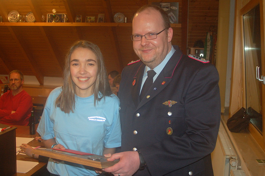 Zum neuen Ortsjugendfeuerwehrwart wählten die Jugendlichen Jan Kasten, zu seinem Stellvertreter Tim Kleebeck. Der Jugendrat setzt sich nun aus folgenden Teenagern zusammen: Gruppenführerin Kimberly Bezdiak, ihrem Stellvertreter Liam Hösselbarth, der Sprecherin Sarah Filzek, Schriftführerin Fiona Hösselbarth und Kassenwartin Solea Neuhäuser. Für die beste Dienstbeteiligung mit 94 Prozent erhielt Kimberly Bezdiak ein kleines Geschenk. Die Platzierungen beim Wanderpokal: 3. Platz Isabell Rasch, 2. Liam Hösselbarth und Gewinnerin Kimberly Bezdiak. An die Einsatzabteilung wurde Simon Warnecke abgegeben.