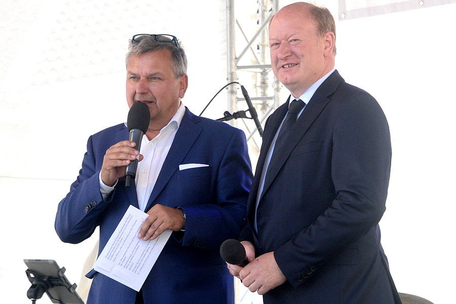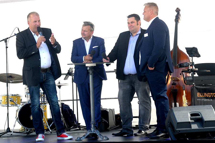 Ehrengast der heutigen Veranstaltung war Reinhold Hilbers, Finanzminister der Bundeslandes Niedersachsen. Er hob die Bedeutung der mittelständischen Betriebe hervor und betonte, "dass es beachtlich ist, was hier bei Teccom entstanden ist." Familienunternehmen seien besonders von Bedeutung, weil in der Regel der Fortbestand gesichert sei – auch wenn das manchmal recht schwierig sei. Aber von ihnen gehe eine neue Dynamik aus. Der Minister machte zudem deutlich, "dass die Bürokratie abgebaut werden muss." Zuvor hatte Marc Wolter darauf hingewiesen, dass die Behörden mit ihrer Bürokratie besonders den kleinen Unternehmen das Leben schwer machen würden. In der Bühnen-Gesprächsrunde zeigten Marc Wolter sowie die weiteren Teccom-Geschäftsführer Andree Thoma und Jens Küstermann die Philosophie des Unternehmens nach und auf, und sie ließen einen Blick in die Erwartungen der Zukunft zu.