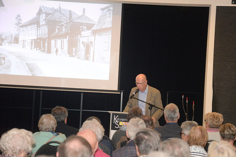 Werner Vahlbusch stellte ziu beginn der Buchpräsentation den Werdegang von "Sarstedt – mehr als nur eine Geschichte" vor und er bedankte sich bei den Sponsoren für ihre Unterstützung sowie bei der Lektorin Ute Lehrke – sie erhielt am Ende der Veranstaltung einen Blumenstrauß.