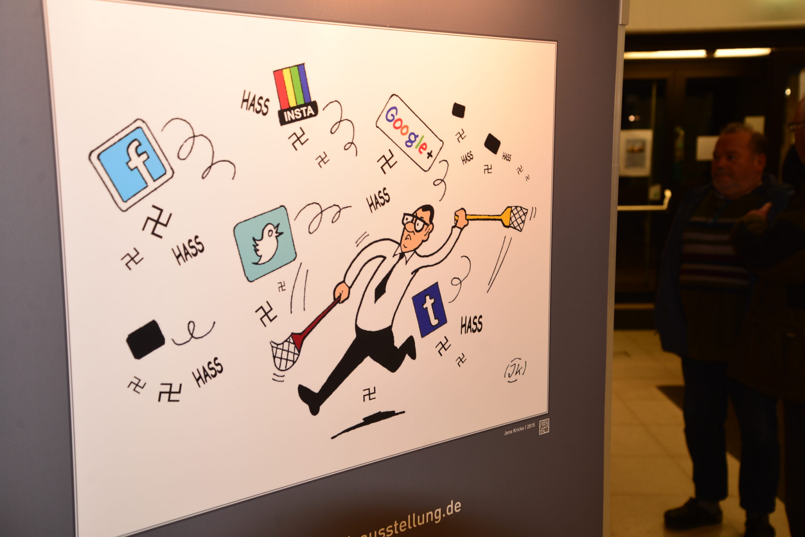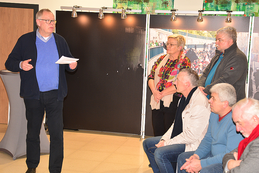 Karl-Heinz Forster vom Stadtmarketing e. V. – es hat diese Ausstellung finanziert und dadurch überhaupt möglich gemacht – unterstrich, "dass unsere Demokratie nicht gesichert ist, aber es liegt an uns, sie zu erhalten." Fremdenfeindlichkeit, Angst, Hass und Leid würden geschürt. Es gebe dazu viele Fragen wie zum Beispiel, wie die Einzelperson damit umgehe. "Die Anfeindungen machen mir Angst, denn die Rechtsextremen haben weiter Zulauf. Wie gehen junge Menschen mit dieser Thematik um? Sie können sich mit dieser Ausstellung mit dem Thema auseiandersetzen und diskutieren."