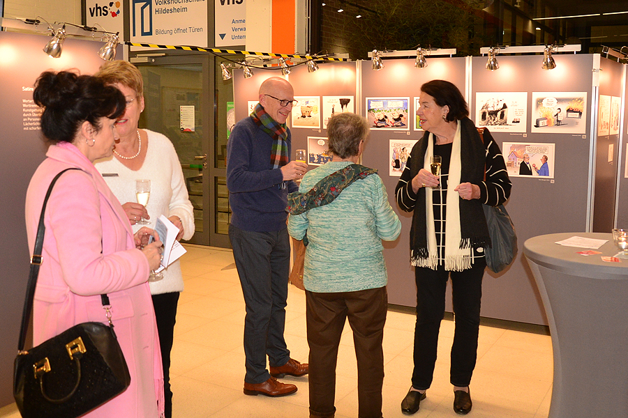 „Rechtsextremismus treibt uns in unserem Land um. Welch ein Szenario 75 Jahre nach Ende des Zweiten Weltkrieges. Die Rechtsextremisten sind wieder präsent mit ihren Parolen, ihren Anfeindungen und ihren Gewalten. Und darauf müssen wir immer wieder hinweisen.“ Das sagte heute Abend Heike Brennecke, Bürgermeisterin der Stadt Sarstedt, im Rahmen der Eröffnung der Wanderausstellung „Oh ein Dummel“ in den Räumen der VHS Sarstedt in der Albert-Schweitzer-Schule am Wellweg. Diese Ausstellung zeigt Karikatur und Satire mit Problemen und Auswirkungen der rechten Szene in unserer Gesellschaft.. Heike Brennecke zeigte unter anderem auf, dass die vergangenen Wahlen in Sarstedt mit seinen Ortsteilen der Partei AfD zweistellige Ergebnisse eingebracht haben. Es sei die Pflicht der Menschen, sich damit auseinanderzusetzen, und diese Ausstellung sei eine besondere Art der Auseinandersetzung mit diesem Thema. "Ich hoffe sehr, dass diese Austellung besonders die Jüngeren, unsere Schülerinnen und Schüler erreicht. Es geht um ihre Zukunft, um ihr Leben in Freiheit."