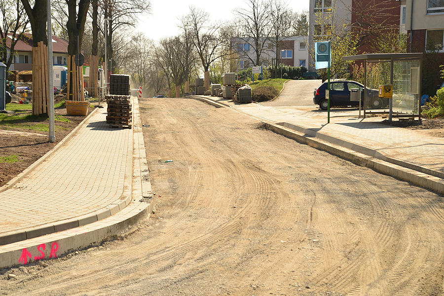Nächste Woche kommt die größte Einschränkung auf die Anlieger zu, dann wird die bituminöse Fahrbahn eingebaut. Von Mittwoch, 15. April, 15 Uhr, bis zum Sonnabend, 18. April, etwa neun Uhr, wird es aus diesem Grund eine Vollsperrung geben, in dieser Zeit ist dann auch kein Anliegerverkehr möglich. "Für Feuerwehr- sowie und Rettungsfahrzeuge für das Alten- und Pflegeheim wird es eine Sonderlösung geben", sagte Rembert Andermann. Direkt im Anschluss werden die gepflasterten Einmündungsbereiche in der Reihenfolge Kiefernstraße, Nußbaumstraße und Holunderweg hergestellt.