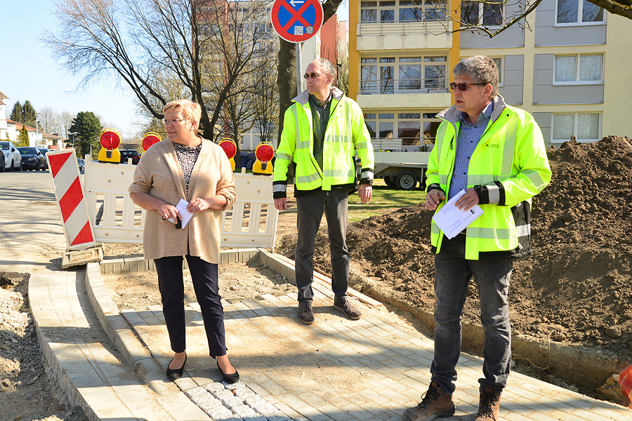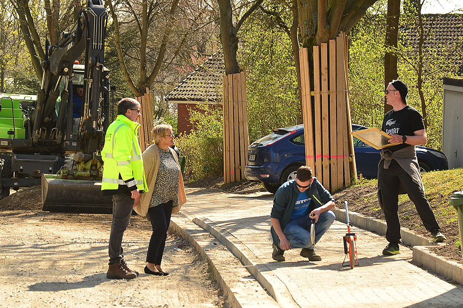 Die gute Nachricht: die Sanierung der Lindenallee wird früher Vergangenheit sein als erwartet, die letzten Arbeiten sollen im Mai beendet werden. Die weniger gute Nachricht für die Anlieger: die Straße kann nächste Woche von Mittwoch Nachmittag an bis Sonnabend Vormittag nicht befahren werden. Heute machten sich Bürgermeisterin Heike Brennecke, Bauamtsleiter Rembert Andermann und Burkhard Adolphi aus dem Bauamt persönlich ein Bild vom Stand der Dinge.. Mit dem Ausbau der Lindenallee hat die Stadt Sarstedt im zurückliegenden Jahr eine wichtige Baumaßnahme beschlossen. Die Arbeiten auf der Baustelle liegen voll im Zeitplan und die Schlussphase beginnt. Alle Arbeiten zum Kanal- und Wasserleitungsbau sind erledigt. Die beidseitigen Gehwege, die Bushaltestelle und der Parkplatz an der Nußbaumstraße sind fertig gestellt. Der Unterbau für die Straße ist fast fertig. In dieser Woche wurde die letzte Schicht Mineralgemisch in die Straße eingebaut. Am 14. April wird die Kieferstraße aufgrund von Bauarbeiten als Einbahn-straße eingerichtet. Diese Regelung gilt bis zum 24. April, dann ist die Kiefernstraße wieder von der Lindenallee her zu erreichen.