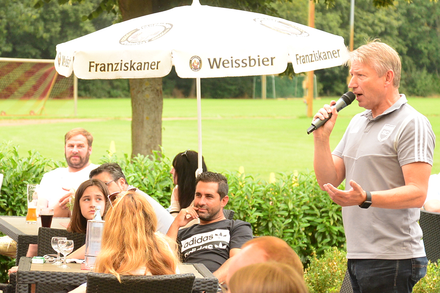 Zuvor hatten Othersen und Gerlach die 2. Herrenmannschaft vorgestellt und ihr sowie den erfogreichen Jugendmannschaften die Mannschaftskasse aufgebessert. Zum Schluss dieser beinahe zweistündigen Veranstaltung stellten Gerd Gerlach und Sven Othersen zunächst den neuen Trainer Martin Pyka vor, danach die zehn neuen Kicker des Landesliga-Aufgebots. Martin Pyka gab zum besten, dass er an der Hohen Bünte die bereits sehr guten Bedingungen optimieren möchte. "Eine Video-Analysesoftware ist wünschenswert, und vielleicht gelingt es uns oft, ein Tor mehr zu schießen als der Gegner." Eine Prognose über den finalen Tabellenstand des nächsten Spieljahres mochte Pyka nicht abgeben. Mit Lars Wesche – ehemals unter anderem Landesliga-Torwart beim SV Germania Grasdorf und 07 Linden – ist ein Torwarttrainer gewonnen worden, was fehlt ist ein Betreuer/Betreuerin – oft die gute Seele einer Mannschaft. Und noch etwas Neues: seine Heimspiele wird der Landesligist zukünftig sonnabends bestreiten.