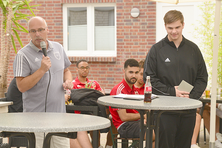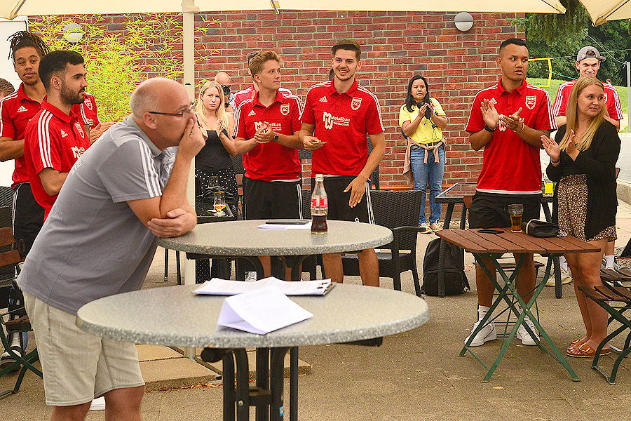 Gewöhnlich sind es sportliche Erfolge, die aufhorchen lassen und für ebenso stolze wie auch glückliche Momente sorgen. Heute war es in der Fußball-Abteilung des SC Hemmingen-Westerfeld der gesellige Nachmittag auf der Terrasse des Vereinshauses an der Hohen Bünte, der gute Gefühle und Nachhaltigkeit verbreitet hat. Grund der Zusammenkunft war primär die Vorstellung der 1. sowie 2. Herrenmannschaft und ein Blick zurück auf die jüngste Vergangenheit – moderiert vom Vereinsvorsitzenden Gerd Gerlach und Fußball-Chef Sven Othersen.. Beim Blick zurück in die Vergangenheit – für die Fußballer des SC Hemmingen-Westerfeld historisch das beste Spieljahr der Vereinsgeschichte – geht kein Weg an Jugendtrainer Heinz Musehold vorbei. "Er hält, was er verspricht", rief Sven Othersen in das Publikum. "Wenn er sagt, wir steigen auf, dann schafft er das auch." Musehold sei jetzt sechs Jahre im Verein und habe dabei dem SC Hemmingen-Westerfeld fünf Aufstiege von Jugendmannschaften eingebracht. Im vergangenen Spieljahr zeichnete Musehold für die A-Junioren – Aufsteiger in die Landesliga – sowie die B-Junioren – Aufsteiger in die Niedersachsenliga – zuständig. Mit den C-Junioren hat Heinz Musehold zwar weniger zu tun, aber sie bleiben Landesligist. Bezüglich das A-Junioren gab Musehold ein weitere Zielsetzung ab: "Wir wollen in die Niedersachsenliga hoch." Der Abteilungsvorstand weiß das alles zu würdigen und beschenke Heinz Musehold mit zwei Eintrittskarten für das Bundesligaspiel zwischen RB Leipzig und Bayern München – inclusive einer Hotelübernachtung.