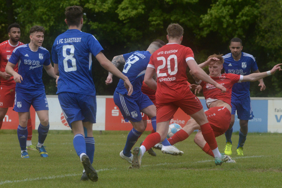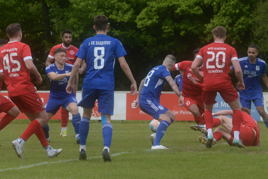 1. FC Sarstedt: Kleinert, Müller (54. Park), Thomas, M. Schäfer, Gimber (75. Schmedt), Schröder (12. Türschen), Jokuszies (85. Vucinovic), Jürgens, Mamadou (82. Alabas), Flemmer, C. Schäfer.