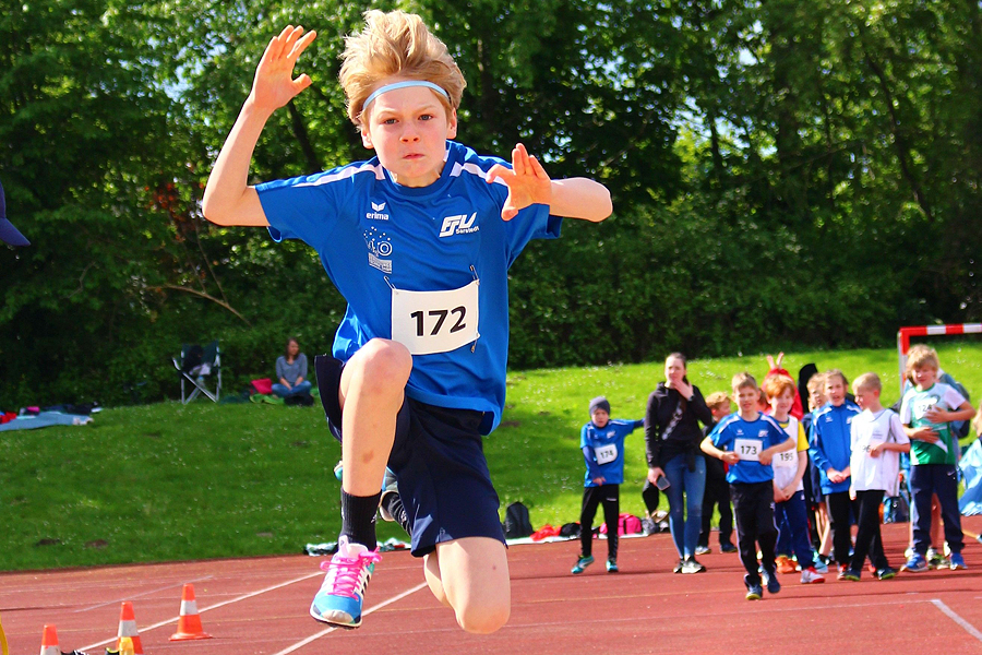 Bei den Jungen stellte sich Läufer Niclas Legler (M15) dieses Mal der Konkurrenz im Vierkampf. Für ihn begann der Wettkampf mit dem 100m-Sprint in 14,28 Sekunden, gefolgt von 1,28 m im Hochsprung (p.B.) sowie 7,28 m im Kugelstoßen (p.B.). Beim abschließendem Weitsprung folgten gute 4,41 m. Damit sicherte sich Niclas Legler den Vizekreismeistertitel mit 1532 Punkten (p.B.). Als Garant für sehr gute Leistungen sollte Justus König (M10) wieder einmal über sich hinauswachsen und in allen drei Disziplinen neue persönliche Bestleistungen aufstellen. Im 50m-Sprint lief er in 8,07 Sekunden die schnellste Zeit in seiner Altersklasse und sprang zum ersten Mal mehr als vier Meter weit (4,03 m). Beim Schlagball folgten gute 28,00 m. Damit holte sich Justus König verdient den Sieg mit 965 Punkten im Dreikampf. Teamkollege Sverre Lauenstein (M9) musste sich an diesem Tag äußerste knapp geschlagen geben, freute sich aber dennoch über den 2. Platz in seiner Altersklasse (Sprint 8,32 Sekunden, Weitsprung 3,96 m, Ballwurf 33,0 m – 971 Punkte). Jasper Sonnemeier ging zum ersten Mal im FSV-Trikot an den Start, und er konnte sich über den 3. Platz mit 831 Punkten freuen (50m 8,44 sek., Weit 3,24m, Ball 28,00m). Maximilian Baehre und Constantin Passinger vervollständigten das Team und freuten sich ebenfalls über gute Leistungen.