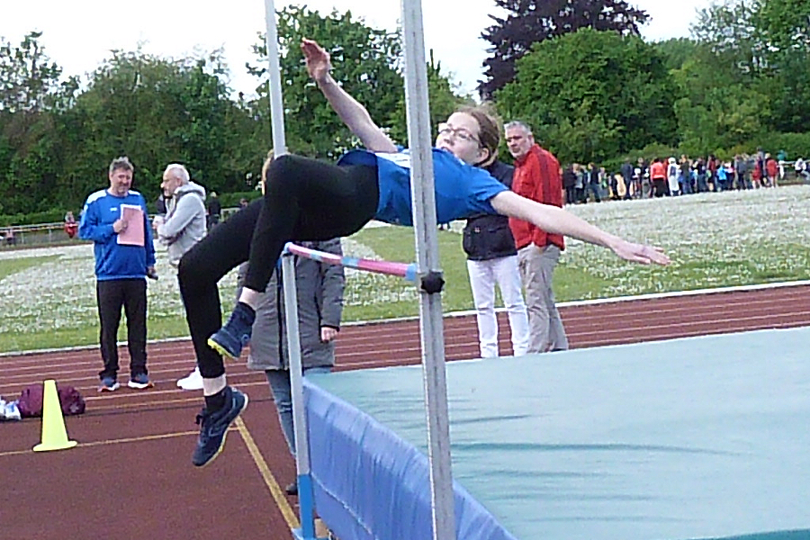 Sonntag veranstaltete die FSV Sarstedt auf der Sportanlage am Schulzentrum in Sarstedt den traditionellen Mehrkampf im Mai einschließlich der Kreismeisterschaften Vierkampf für die Altersklassen U16 und U14. Mehr als 200 TeilnehmerInnen aus der Region Hannover waren bei diesen Wettkämpfen vertreten.. Von den 22 teilnehmenden Sarstedter FSV-Leichtathleten ging Lena Jedamzik in der Altersklasse W 15 im Vierkampf an den Start. Zuerst wurde der 100m Sprint absolviert und anschließend ging es nahtlos weiter zum Hochsprung. Hier konnte die Schülerin ihre persönliche Bestleistung (p.B.) auf 1,20 m steigern. Beim Kugelstoßen gelang ihr ein guter Stoß auf 6,14 m. Aufgrund von Problemen beim Weitsprunganlauf war sie mit den erreichen 3,37m zufrieden. Am Ende bedeuteten 1227 Punkte der Sieg und der Kreismeistertitel für die Schülerin.