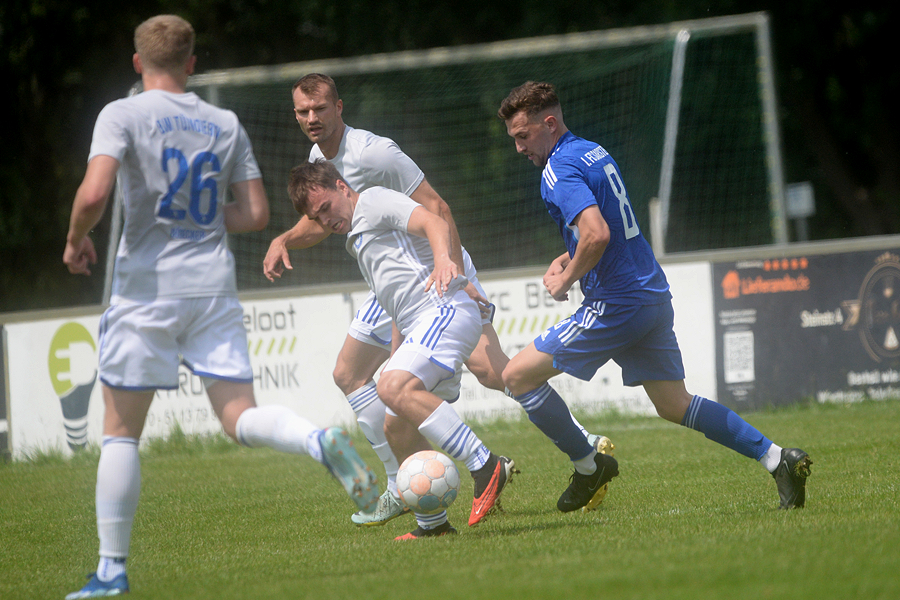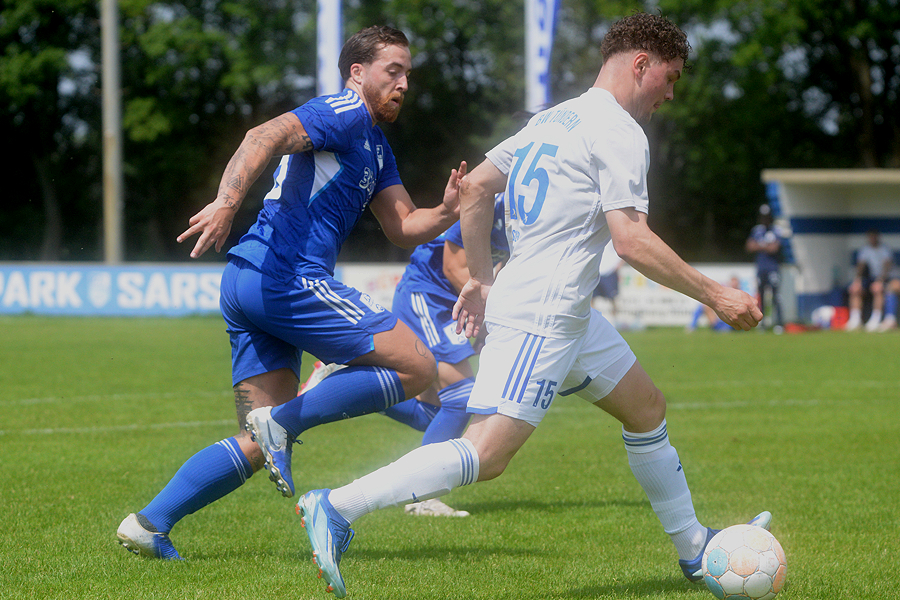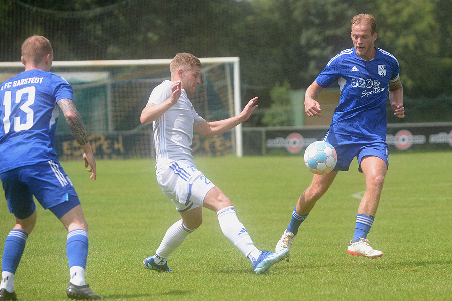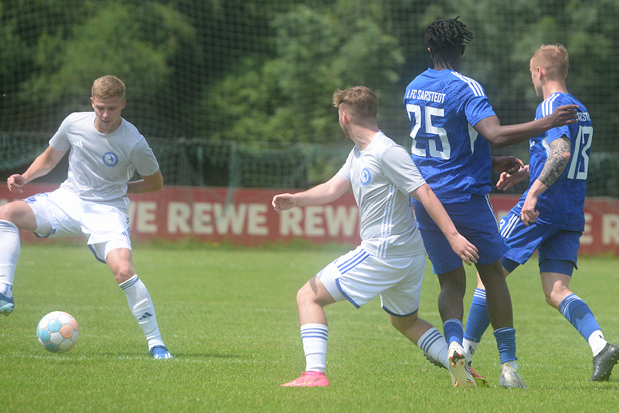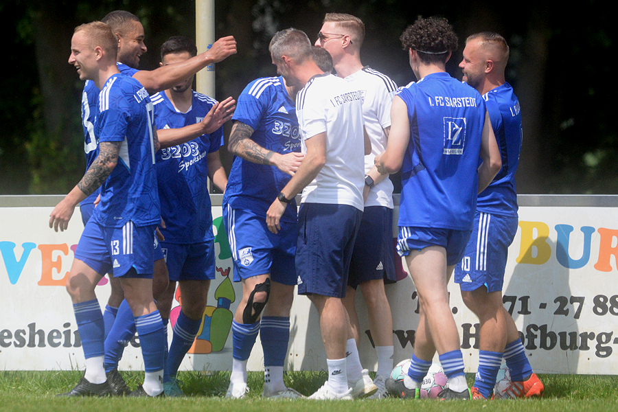 Das letzte Heimspiel der Saison 2023/2024 wurde für den Landesligisten 1. FC Sarstedt zu einem Torfestival, der Absteiger von der Innerste besiegte den HSC Blau-Weiß Tündern 7:1.. Eine Fußball-Weisheit sagt: eine Mannschaft kann nur so gut spielen, wie es der Gegner zulässt. Und der Landesligist 1. FC Sarstedt hatte heute im letzten Heimspiel der Saison mit dem HSC Blau-Weiß Tündern einen Gegner, der sehr viel zugelassen hat. Beim Schlusspfiff von Schiedsrichter Patrick Herbach lagen die FCer 7:1 (3:0) vorn. Den Torreigen eröffnete Jonas Jürgens mit seinem 18. Saisontreffer in der 9. Spielminute, bis zum Seitenwechsel erhöhten Max Schäfer (24.) und Aiman Hoballah (29.) auf 3:0, und nach der Pause waren erneut zunächst die FCer am Drücker, 4:0 (50.) durch Christian Schäfer und 5:0 (56.) durch Jonas Jürgens. Nach dem Ehrentreffer der Gäste (62.) stellten Connor O´Donnell durch den an Christian Schäfer verursachten Strafstoß (78.) und Moritz Müller von Blumencron (85.) das Endergebnis her. War der Gast nun so schlecht oder der FC so gut? "Beides", sagt Dennis Reimann aus dem Trainerstab der Sarstedter. "Der Sieg geht auch in dieser Höhe voll in Ordnung, bei uns hat heute vieles funktioniert."