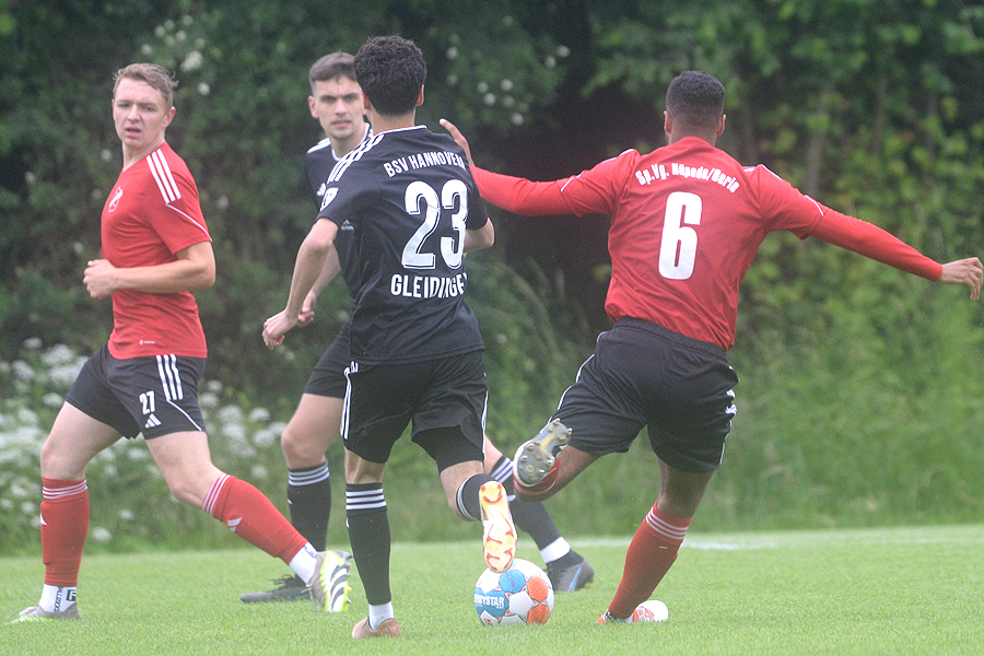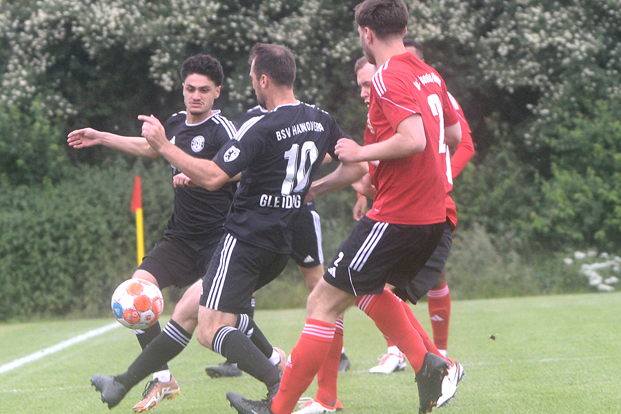 Sechs Tore sahen die Zuschauer beim Spiel zwischen der SpVg. Hüpede/Oerie und dem BSV Gleidingen – am Ende trennten sich beide Teams 3:3 (2:0). Die erste Hälfte ging fast komplett an die Gastgeber. Philipp Eicke brachte die SpVg. in der 4. Minute in Führung. Nach einem Foul an Eicke verschoss Eric Bergmann in der 14. Minute einen Elfmeter. Zudem traf Eicke in der 20. Minute den Pfosten. Trotzdem traf Eicke in der 39. Minute zum 2:0. Nach dem Seitenwechsel steigerten sich die Gäste enorm und kamen in der 59. Minute durch Raul Corona-Navarro zum 2:1, Nico Jorasch traf in der 77. Minute zum 2:2. Als Jonas Libor in der 90. Minute zum 3:2 für den BSV traf, schien das Spiel gedreht, doch Kevin Goldschmidt traf in der Nachspielzeit zum 3:3-Ausgleich. "In der ersten Hälfte haben wir es versäumt, die Partie schon zu entscheiden. Am Ende können wir glücklich sein, dass wir noch das 3:3 erzielen", sagte SpVg-Trainer Willi Bergmann. Ähnlich sah es Dimitri Kiefer, der heute Trainer Stephan Pietsch vertrat: "In der ersten Halbzeit hätten wir auch höher zurückliegen können. Da hatten wir Glück. Aber in der zweiten Hälfte waren wir viel griffiger und haben uns den Punkt verdient."