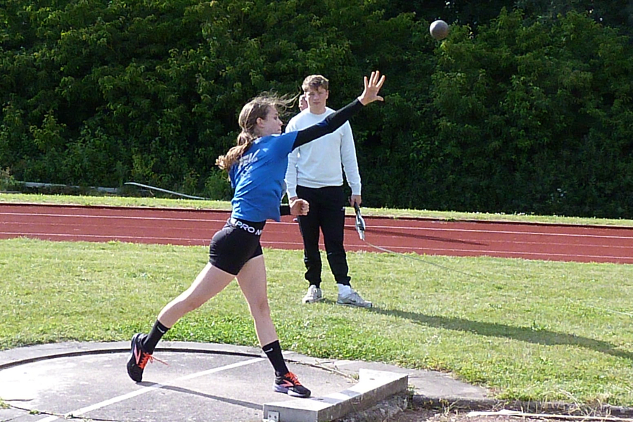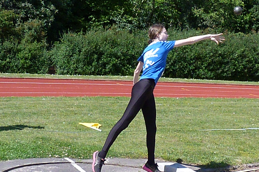 Die LG Peiner Land richtete am Wochenende auf der Sportanlage in Edemissen die Landesmeisterschaften im Mehrkampf der Altersklasse U16 aus. Für die FSV Sarstedt starteten Lena Jedamzik (W15) und Lilit Korb (W14) erstmalig in einem Siebenkampf.. Für Lena Jedamzik begann der Wettkampftag am Sonnabend mit dem Hochsprung. Nachdem sie ihre bisherige Bestleistung von 1,20 Meter souverän übersprungen hatte, steigerte sich die Schülerin auf eine neue persönliche Bestleistung von 1,28 Meter. Anschließend ging es weiter zum Kugelstoßen, wo sie 6,26 Meter stieß und beim Weitsprung folgten 3,73 Meter. Der Abschluss bildete 17,94 Sekunden im 100 Meter-Sprint. Damit erzielte sie 1366 Punkte beim Vierkampf. Sonntag stand als erstes der 80 Meter-Hürdensprint auf dem Programm, wo Lena Jedamzik ihre persönliche Bestleistung auf 19,34 Sekunden steigerte. Der Speer flog an dem Tag auf 17,30 Meter bevor der abschließende 800 Meter-Lauf anstand. Tapfer kämpfte Lena Jedamzik gegen den starken, böigen Wind und erreichte das Ziel in 3:21,81 Minuten. Ihre erzielten 2256 Punkte bedeuteten Platz 13 im Land Niedersachsen, und sind gleichzeitig Vereinsrekord.