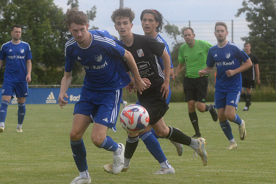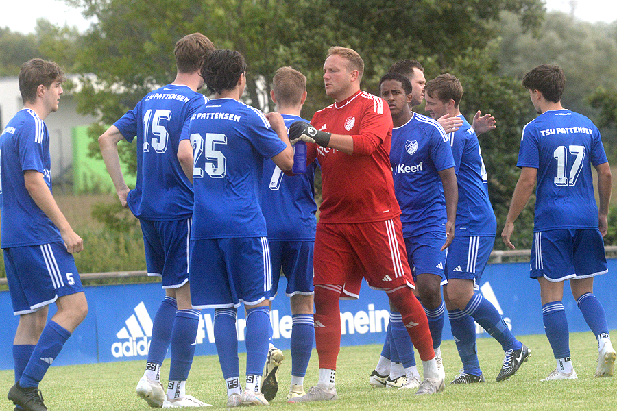 Durch den Treffer von Melvin Görgen in der 70. Spielminute setzte sich Bezirksligist TSV Pattensen II gegen den FC Ambergau-Volkersheim 1:0 (0:0) durch. "Das war aus meiner Sicht ein etwas schmutziger Sieg", sagt Pattensens TSV-Trainer Holger Müller. Der Gegner habe einige Tormöglichkeiten liegen lassen, und TSV-Torwart Marten Krause nichts zugelassen. "Aber wir haben durchaus verdient gewonnen. Immerhin stand eine ganz junge Mannschaft auf dem Platz." Es sei sicher auch etwas glücklich, am Ende als Gewinner vom Spielfeld zu gehen. "Unsere Jungs haben einen starken Willen gezeigt." Dass Jonas Grönig in der 80. Spielminute mit Gelb/Rot vom Platz musste, hat dem TSV Pattensen am Ende nicht geschadet.