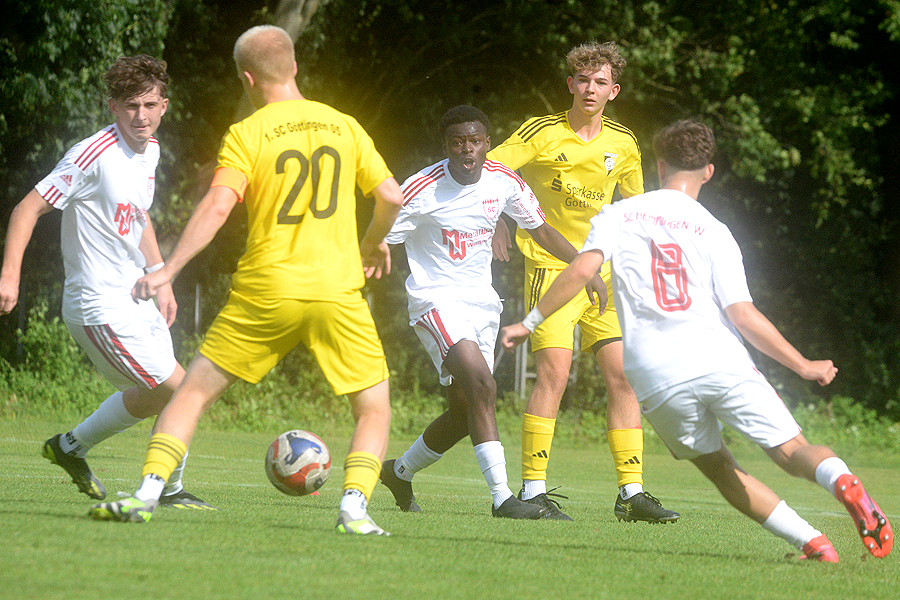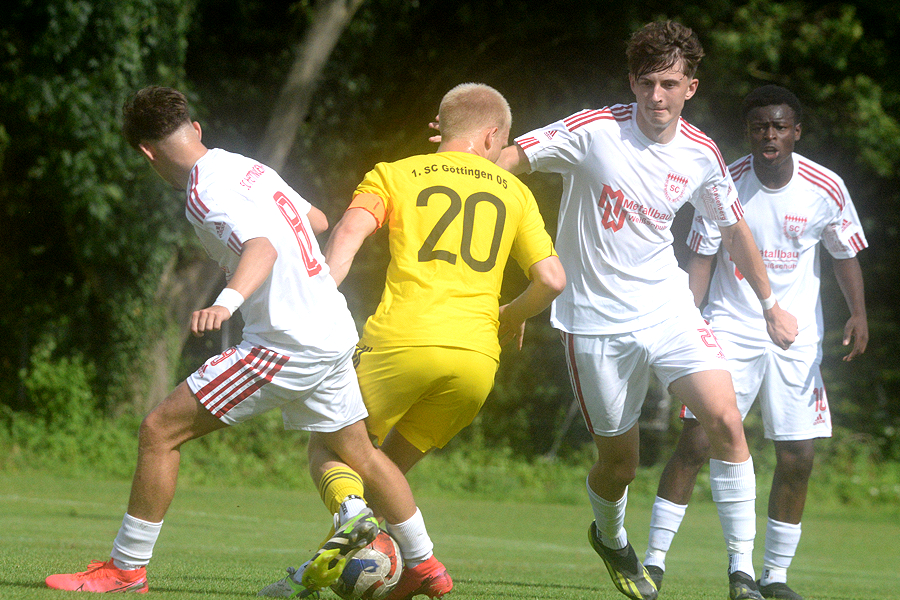 B-Junioren: Zum Punktspielauftakt in der Niedersachsenliga musste der SC Hemmingen-Westerfeld beim 1. SC Göttingen 05 spielen, musste die Heimfahrt mit der 1:2 (0:0)-Niederlage antreten. In der 1. Halbzeit ließen die SCer einige gute Torchancen liegen, nach dem Seitenwechsel liefen sie in einen Konter, und lagen damit 0:1 zurück. Danach wurde offensiver agiert, aber der Lohn blieb aus, ein weiterer Konter der Gastgeber führte zum 2:0 für die 05er, erst kurz vor Spielende schoss Salvatore Natale das Anschlusstor. "Das war eine sehr unglückliche Niederlage", kommentiert SC-Trainer Arash Tawahen die Begegnung in der Universitätsstadt. "Es war insgesamt ein ausgeglichenes Spiel."