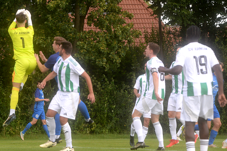 Rundum gelungener Sonntag für die SV Arnum: Zum traditionellen Musikfrühschoppen strömten sehr viele Gäste auf die Sportanlage, im Anschluss siegte die SVA in der Bezirksliga gegen Blau-Weiß Salzhemmendorf 4:0 (0:0) und steht damit auf Platz 1 der Tabelle. Schon in der ersten Halbzeit waren die Gastgeber haushoch überlegen gegen sehr defensiv eingestellte Gäste. Aber die Tore sollten erst in der zweiten Hälfte fallen. Kurz nach Wiederanpfiff traf Niklas Roemgens zum 1:0. Patrick Richter legte in der 61. Minute das 2:0 nach. Nur wenige Minuten später verschoss Andreas Kallinich einen Handelfmeter. In der 70. Minute traf erneut Roemgens zum 3:0 und der eingewechselte Raul Corona-Navarro markierte das 4:0 in der 72. Minute. "Über 90 Minuten war das unsere bisher beste Saisonleistung gegen einen sehr tief stehenden Gegner. So kann es weitergehen", sagte SVA-Trainer Maxi Abels.