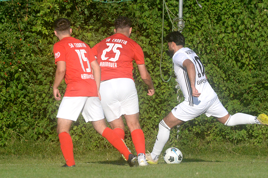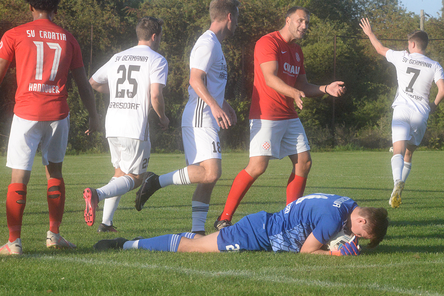 Was für ein Krimi: Der SV Germania Grasdorf zog durch das 6:5 im Elfmeterschießen beim Kreisligisten SV Croatia Hannover ins Achtelfinale ein. Nach 90 Minuten stand es 2:2, auch da gab es eine dramatische Schlussphase. Nach dem 1:0 durch Jonas Libor (27.) glichen die Gastgeber kurz vor Spielende zum 1:1 aus (84.). Alexander Sölter erzielte in der zweiten Minute der Nachspielzeit das 2:1. Doch die Gastgeber hatten auch darauf eine Antwort und schafften in der vierten Minute der Nachspielzeit das 2:2. Im Elfmeterschießen war es letztlich Max Peschel, der den entscheidenden Elfmeter zum Achtelfinaleinzug verwandelte. "Es war ein intensives Spiel. Ich freue mich für die Junge, dass wir jetzt im Achtelfinale stehen. Das gibt uns Rückenwind für die kommenden Wochen", sagte Germania-Trainer Björn Weihmann.