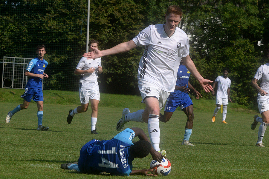 Was für ein Heimsieg: Der SV Germania Grasdorf fertigt die bisherige Überraschungsmannschaft und Aufsteiger SG Kirchwehren/Lathwehren 8:2 (5:0) ab und steht mittlerweile auf Platz 6 der Tabelle. Die Germanen erwischten eine perfekte erste Hälfte und führten nach Toren von Jan Voßmeyer (10., 30., 35.), Pasheu Merivani (33.) und Patrick Schmidt (44.) bereits uneinholbar 5:0 zur Pause. Nach dem Seitenwechsel trafen zunächst die Gäste zum 5:1 in der 53. Minute. Durch ein Eigentor (61.) und ein Tor von erneut Merivani zogen die Germanen auf 7:1 davon. Nach dem 7:2 in der 85. Minute setzte Nico Jorasch per Elfmeter zum 8:2 in der 90. Minute den Schlusspunkt. „Ich bin natürlich sehr zufrieden mit dem Sieg. Ich hätte mir allerdings gewünscht, dass wir auch in der zweiten Halbzeit denselben Hunger gehabt hätten. Aber am Ende ist es ein klares und auch in der Höhe verdientes Ergebnis“, sagte Germania-Trainer Björn Weihmann.