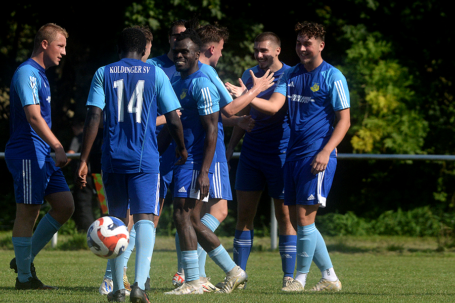 Torfestival in der Staffel 3 der Kreisliga: Der Koldinger SV schickte den TSV Kolenfeld mit der 1:8-Packung auf die Heimfahrt, der SV Germania Grasdorf deklassierte Neuling SG Kirchwehren/Lathwehren 8:2 und der BSV Gleidingen ging beim TSV Kirchdorf 1:6 unter.. Ein wahres Schützenfest erlebten die Zuschauer beim Heimspiel des Koldinger SV gegen den Bezirksliga-Absteiger TSV Kolenfeld. 8:1 siegte der KSV, Trainer Petros Pappas sprach allerdings von einem Sieg, der ein paar Tore zu hoch ausgefallen sei. Boua Karim Dagnogo brachte die Gastgeber in der 21. Miunute in Führung. Nach dem Ausgleich der Gäste in der 29. Minute machte Lukas Bobrzik das schmeichelhafte 2:1 kurz vor der Pause. „Wir hätten zur Halbzeit vom Spielverlauf her eigentlich 0:2 zurück liegen müssen. So war das 2:1 sehr glücklich und natürlich psychologisch von Vorteil für uns“, sagte Pappas. Mit dem 3:1 direkt nach Wiederanpfiff durch Amadou Sayon (48.) war der Wille der Gäste gebrochen und beim KSV funktionierte einfach alles. Dagnogo (60., 72., 77.) und Sayon (88., 90.) schossen den 8:1-Kantersieg heraus. „Wir haben heute zu den richtigen Zeitpunkten die Tore gemacht, danach war es ein Selbstläufer. Solche Spiele erlebt man nicht oft“, sagte Pappas.