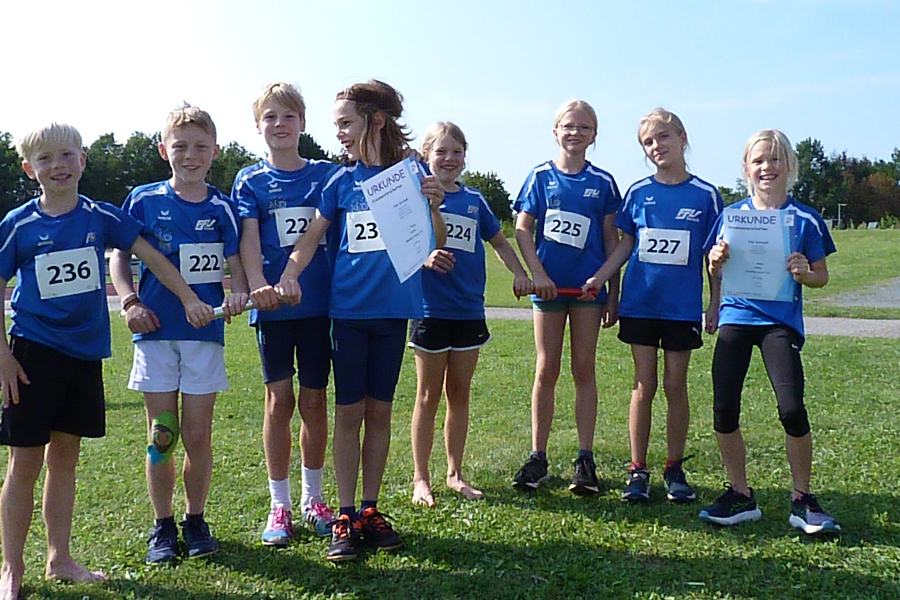 Bei einem Teilnehmerfeld von insgesamt 155 gemeldeten Kindern und Jugendlichen waren auch 14 Nachwuchsleichtathleten der FSV Sarstedt am Start.. Sverre Lauenstein (M9) zeigte erneut seine Stärke in allen Disziplinen, und er ließ alle seine Mitstreiter hinter sich. Sowohl im 50 m Sprint (8,08 Sekunden), als auch im Weitsprung (4,01 m) und im Ballwurf (44,00 m) durfte er sich über den 1. Platz und über drei Kreistitel freuen. Seine gleichaltrigen Team-Kollegen Jasper Sonnemeier und Maximilian Baehre erzielten auch sehr gute Leistungen und Platzierungen auf dem Treppchen. Jasper sprintete die 50 m lange Strecke in 8,32 Sekunden (Platz 2), sprang 3,55 m weit (Platz 4) und der Ball landete bei einer Weite von 30,00 m (Platz 3). Maximilian Baehre sicherte sich Platz 5 im Sprint (8,53 Sekunden), den 2. Platz im Weitsprung (3,70 m) und einen souveränen 6. Platz im Ballwurf (23,00 m).