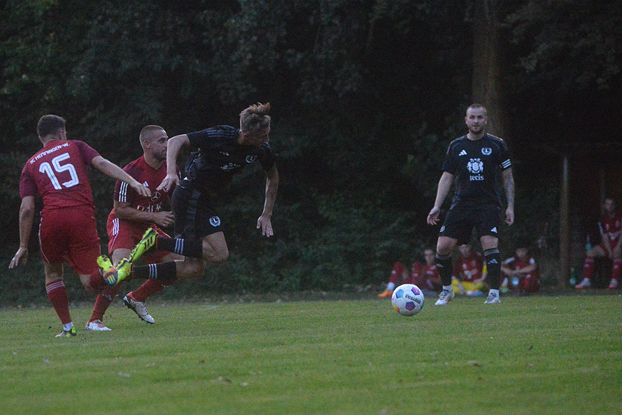 Das war am Ende eine klare Angelegenheit: Der favorisierte Tabellenzweite SC Hemmingen-Westerfeld hat sich gestern Abend souverän 6:1 (1:0) bei der SpVg. Laatzen durchgesetzt.. Auf dem B-Platz sahen die Zuschauer noch eine halbwegs ausgeglichene erste Halbzeit. Durch einen einfachen Fehler in der Defensive traf Michael Gerlach von SC Hemmingen-Westerfeld zum 0:1 in der 32. Minute. Nach dem Seitenwechsel drehten die Gäste so richtig auf zogen durch Tore von Luc Slomka (50.), Luis Mertens (52.) und Ian Kluw(54.) auf 4:0 davon. Damit war die Partie entschieden. Markus Mäurer gelang in der 71. Minute der Ehrentreffer für die Gastgeber. Die Gäste legten noch zwei Tore durch Deniz Berk (76.) und Michael Gerlach (88.) zum 6:1-Endstand nach. "Wir haben die Viertelstunde nach der Halbzeitpause komplett verschlafen und in der Phase das Spiel verloren. Der Sieg für die Heminger ist verdient, weil wir es dem Gegner zu leicht gemacht haben, Tore zu erzielen", sagte Cihan Sanli von der SpVg. Laatzen. SC-Trainer Benny Weisschuh zeigte sich hoch zufrieden mit Leistung und Ergebnis. "Lediglich in der ersten Halbzeit hätten wir mehr Tore machen müssen", sagt er. "Aber so wie heute stelle ich mir das vor. Das war alles in allem ein souveräner Auftritt."
