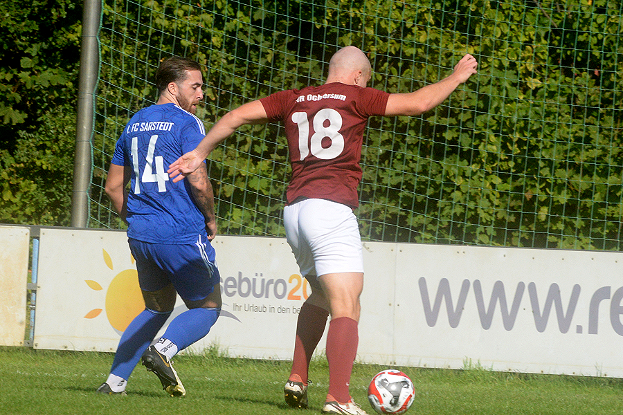 Ein gerechtes torloses Remis sahen die Zuschauer an der Friedrich-Ludwig-Jahn-Straße zwischen dem Tabellendritten 1. FC Sarstedt und dem oberen Tabellennachbarn VfR Germania Ochtersum. Die ersatzgeschwächten FCer haben sich diesen Punkt redlich verdient, und FC-Trainer Robert Breitkopf, er hat heute Cheftrainer Stephan Pietsch vertreten, ist mit der Leistung sowie dem Ergebnis zufrieden. "Das Spiel hat keinen Sieger verdient", lautet seine Bilanz. "Es war viel Mittelfeldgeplänkel zu sehen."