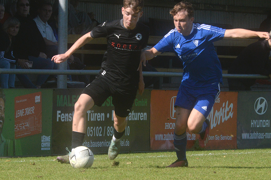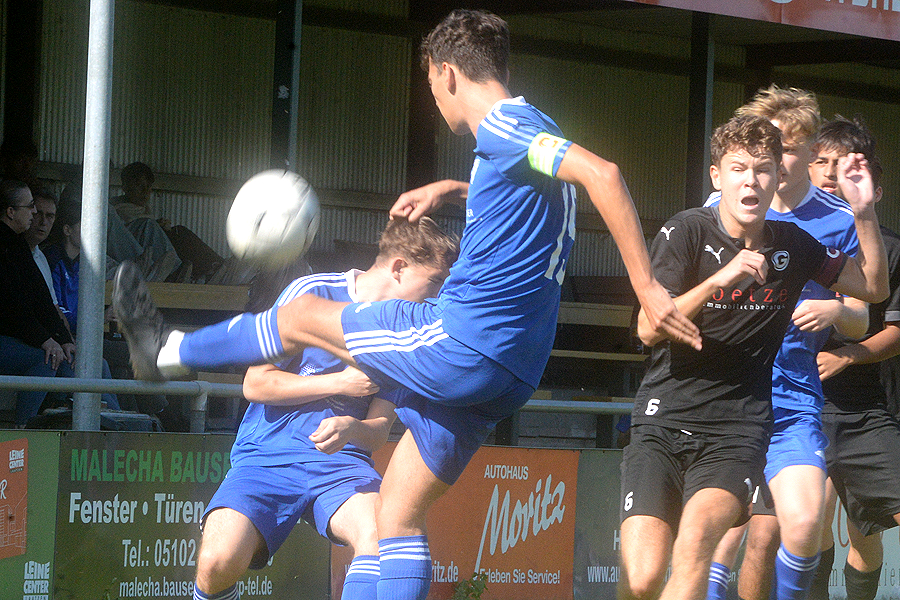 B-Junioren-Niedersachsenliga: Der Tabellenzweite SC Hemmingen-Westerfeld hatte mit der JFV Lüneburg einen Gast aus dem Tabellenmittelfeld zum Gegner, nahm leicht die Favoritenrolle ein, kam aber nicht über das 4:4 (2:2) hinaus. Das 1:0 (5.) durch Salvatore Natale glich der Gegner nicht nur aus (19.), er ging sogar 2:1 (22.) in Führung, das 2:2 (32.) geht auf das Konto von Thore Franz. Im 2. Durchgang trafen zunächst zweimal die Lüneburger (49. und 71.), ehe Mirza Sloboda (74.) und das Eigentor der Gäste in der Schlussminute für das Endergebnis sorgten. "Wir haben nach hinten raus Moral gezeigt, und uns den Punkt redlich verdient." Zu diesem Ergebnis kommt SC-Trainer Arash Tawahen. "Insgesamt haben wir auch ein gutes Spiel gegen einen guten Gegner abgeliefert, hatten viel Ballbesitz und zeigten gute Ideen. Lediglich drei Gegentore waren überflüssig, weil wir bei Standartsituationen kein gutes Stellungsspiel gezeigt haben. Daran werden wir arbeiten müssen."