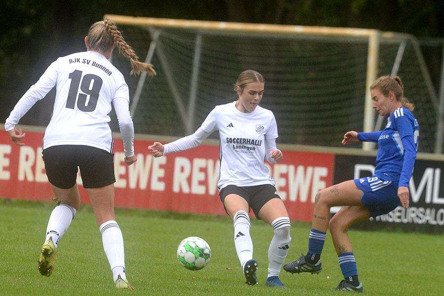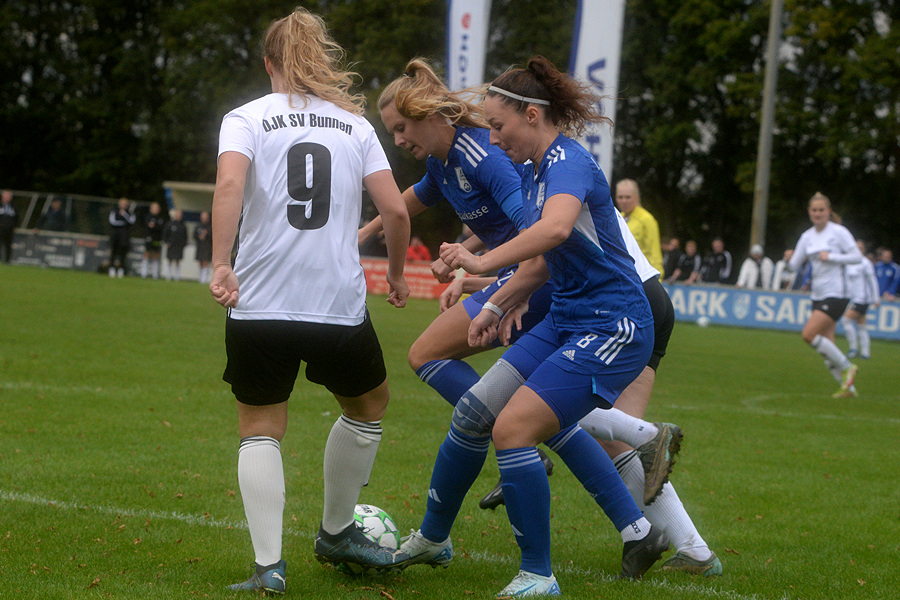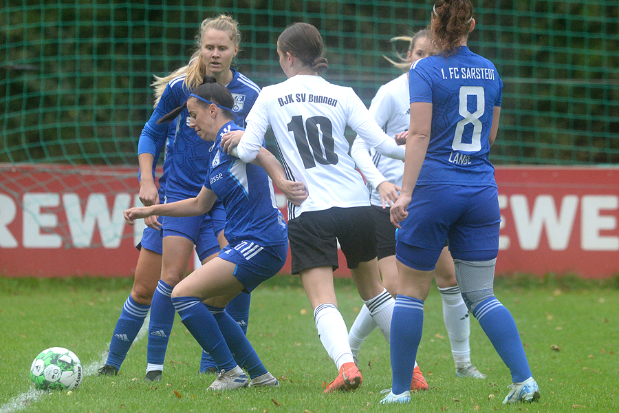 Landesligist 1. FC Sarstedt hat die 2. Runde im Niedersachsenpokal-Wettbewerb erreicht, der klassenhöhere Niedersachsenligist DJK SV Bunnen wurde 2:0 besiegt. Durch die Tore von Jennifer Norden (38.) und Nabila Hamijou (89.) besiegte der Landesligist 1. FC Sarstedt den Niedersachsenligisten DJK SV Bunnen 2:0 und erreicht damit die 2. Runde des Wettbewerbes. Es entwickelte sich von Spielbeginn an ein intensives, kampfbetontes Spiel. Tormöglichkeiten sprangen allerdings hüben wie drüben kaum heraus, lediglich Sofia Reinicke traf einmal aus kurzer Distanz nur den Pfosten der Gästetores. Den FC-Toren waren aus Standardsituationen entstanden. "Es war ein spannendes Spiel", sagt FC-Trainer Kevin Lasenowski. "Am Ende ist der Sieg für uns nicht unverdient. Immerhin spielt der Gegner eine Klasse höher als wir."