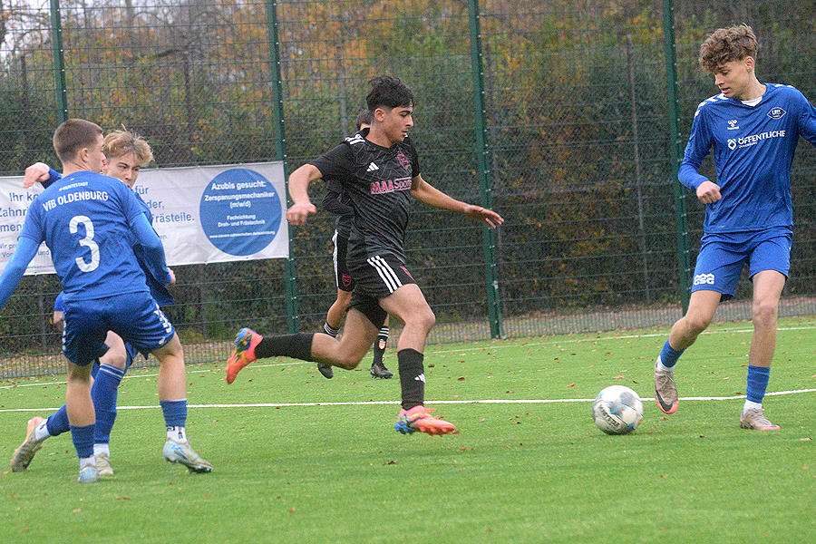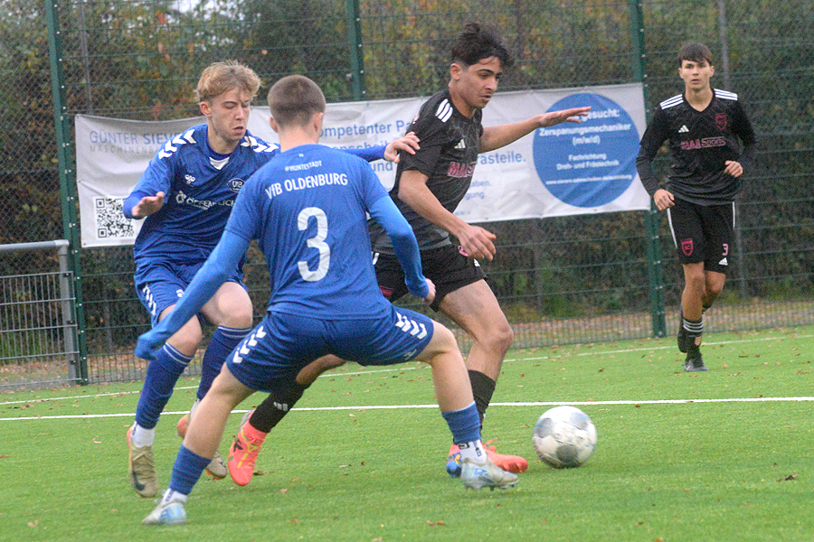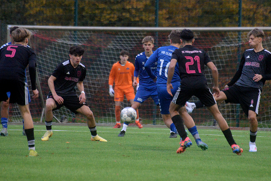 B-Junioren-Niedersachsenliga: 0:2 (0:0) gegen Tabellenführer VfB Oldenburg verloren – damit dürfte der unmittelbare Verfolger des Spitzenreiters, der SC Hemmingen-Westerfeld, keine Ambitionen mehr auf den Titelgewinn hegen, der Rückstand beträgt neun Punkte. "Wir haben leidenschaftlich gespielt, waren ein glelchwertiger Gegner", lautet die Bilanz von SC-Trainer Arash Tawahen. Bei den Gegentoren unterliefen den SCern allerdings folgenschwere Fehler, und selbst ließen sie gute Einschussmöglichkeiten ungenutzt. "Wir hätten durchaus 1:0 in Führung gehen können, und auch nachdem 0:2 gab es noch Torchancen für uns", hat Tawahen gesehen. "Aber insgesamt bin ich mit unserem Auftritt sehr zufrieden."
