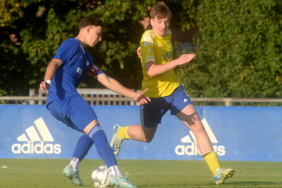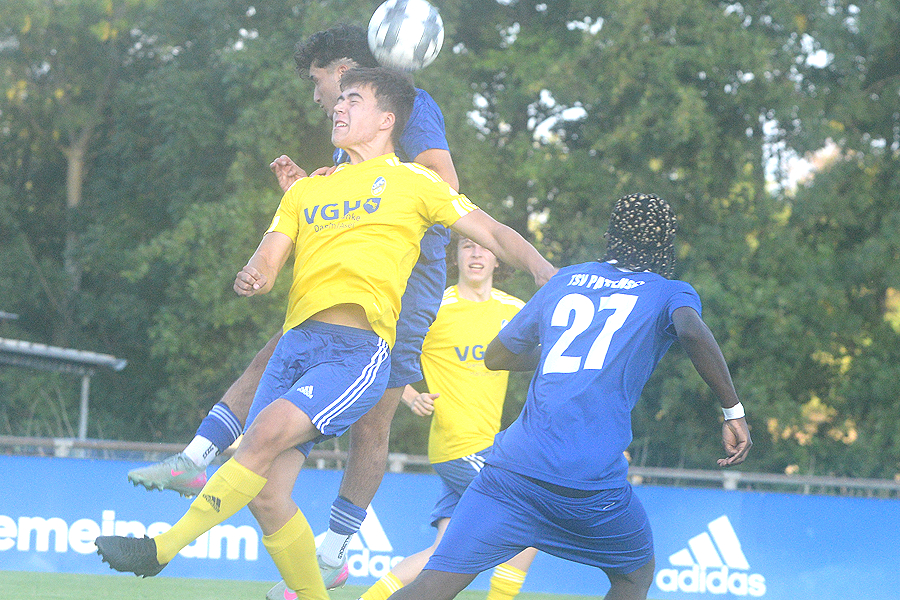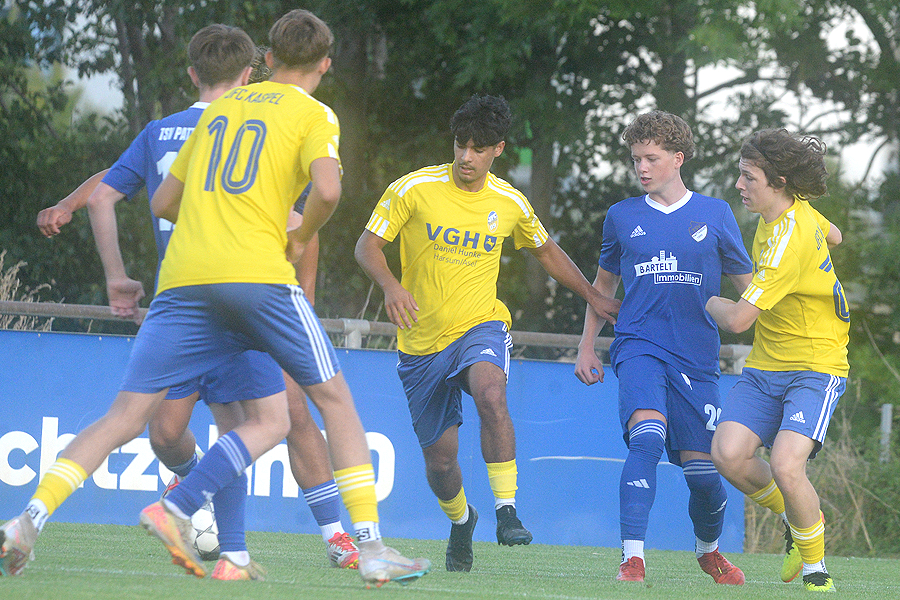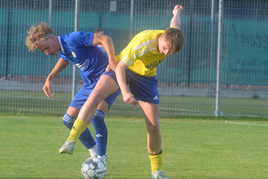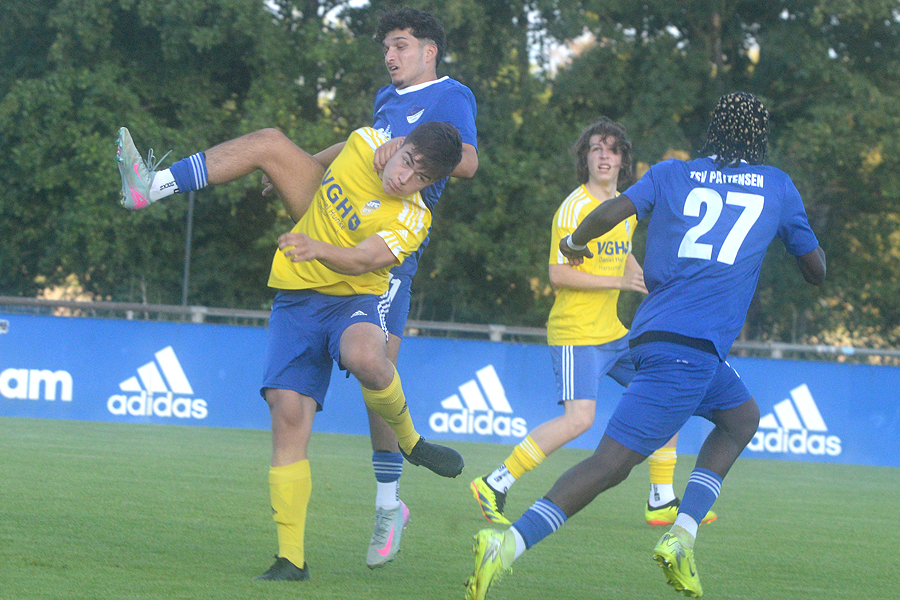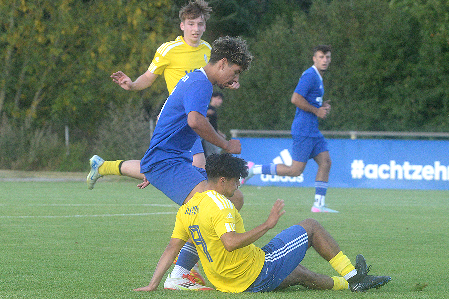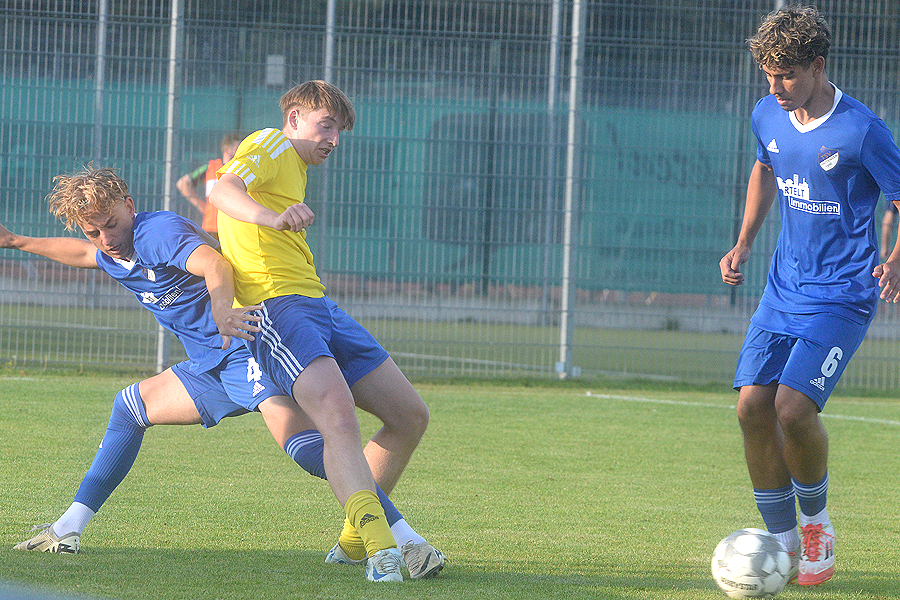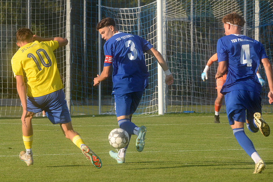 Die A-Junioren des TSV Pattensen sind mit dem 2:1 (1:1)-Heimsieg über den JFC Kaspel 09 aus dem Fußballkreis Hildesheim in das Spieljahr 2025/2026 gestartet. Das Ergebnis spiegelt den Spielverlauf allerdings nur unzureichend wider, die TSVer hätten weitaus höher gewinnen können. Davon konnte aber in der Anfangsphase nicht ausgegangen werden, denn die Gäste legten griffig, einsatzfreudig und lautstark los. „Das hat uns schon überrascht“, räumt Pattensens TSV-Trainer Heinz Musehold ein. Diese Phase wurde aber schadlos überstanden, denn nach 16 Spielminuten war der „Spuk“ vorbei, denn Kyrylo Bezgubov traf per Handelfmeter zum 1:0. Von nun an war es zunächst ein ausgeglichenes Spiel, und der von Joshua Lorenz durch Handspiel verursachte Stafstoß brachte das 1:1 (41.). Im 2. Durchgang wurde es Einbahnstraßen-Fußball, es ging nur noch in eine Richtung, in die zum Tor der Gäste. Aber es dauerte bis zur 76. Spielminute, ehe Christian Yeboah den Siegtreffer im Tor des JFC Kaspel 09 unterbrachte. „Der Gegner hatte in der zweiten Halbzeit nicht eine Torchance“, hat Heinz Musehold beobachtet. „Wir haben ein sehr gutes Spiel abgeliefert, und hoch verdient gewonnen.“