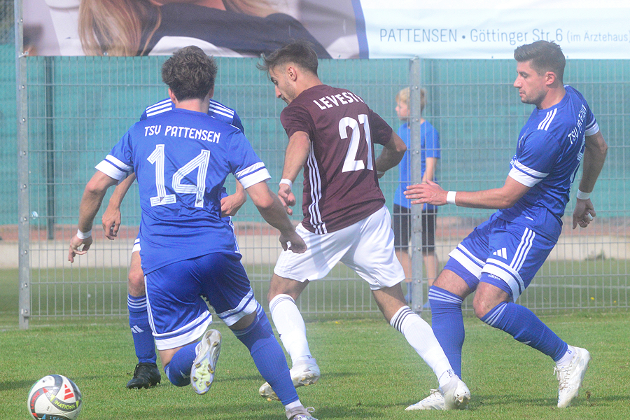 Der TSV Pattensen bleibt in der Bezirksliga weiterhin Tabellenführer Schwarz-Weiß Enzen auf den Fersen. Durch das heutige 3:1 (1:0) gegen den TV Jahn Leveste bleiben die TSVer zwei Punkte hinter dem Tabellenersten. Nils-Ole Heuermann brachte die Pattenser in der 20. Minute in Führung. Luca-Alexander Wagner sorgte per Flugkopfball für das 2:0 in der 64. Minute. In der 74. Minute sah ein Gäste-Spieler die gelb-rote Karte. Die Vorentscheidung war das 3:0 durch erneut Heuermann. Das 3:1 in der 90. Minute fällt in die Kategorie „Schönheitsfehler“. „Der Gegner hat es uns heute nicht leicht gemacht. Am Ende haben wir aber verdient gewonnen und bleiben so weiter oben dran. Letztlich war es eine reife Leistung von uns.“, sagte TSV-Trainer Björn Weihmann.