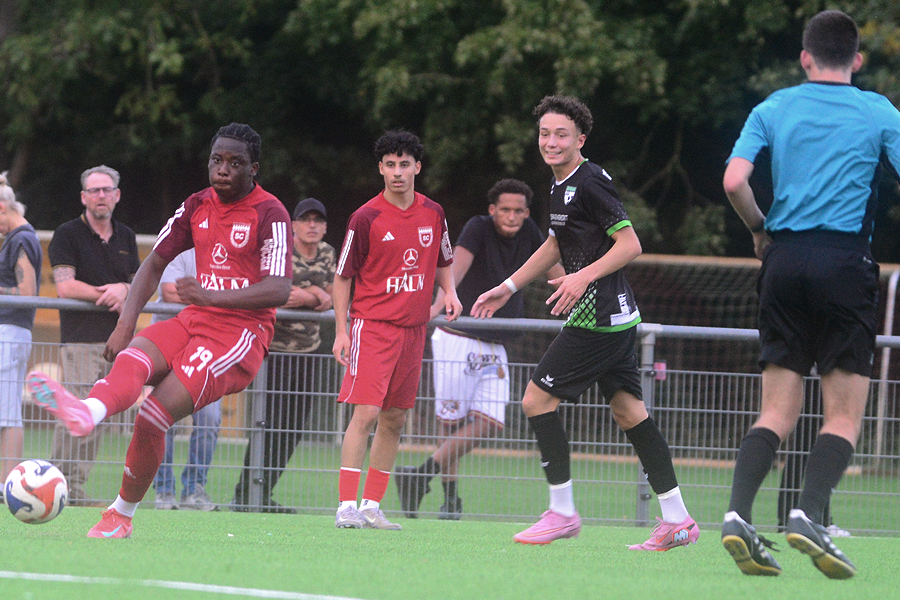 A-Junioren-Landesliga: Der TSV Pattensen war beim unteren Tabellennachbarn JFV Kaspel in Harsum-Borsum zu Gast, hatte die Möglichkeit, den Vorsprung von drei Punkten mit einen Sieg auszubauen, wenigstens aber bei einem Remis zu halten. Dieses Vorhaben ist aufgegangen, in dem „verrückten“ Spiel lagen die Gäste am Ende 5:4 (1:1) vorn, Spieler des Tages war der TSVer Christian Yeboah mit vier Treffern. Das 0:1 (9.) geht auf das Konto von Liam Obertür, in der 25. Spielminute glichen die Gastgeber aus. Nach genau einer Stunde Spielzeit traf der JFC Kaspel zum 2:1, aber dieser Vorsprung hatte nur eine Minute Bestand, Christian Yeboah glich aus (61.). danach traf der TSVer zunächst zweimal (65. und 77.), und nach dem 3:4 (78.) machte er in der 88. Spielminute das 3:5, aber bereits im Gegenzug kam der Gastgeber in dieser rasanten Partie zu seinem vierten Tor. „Wir haben viel zu viel durch individuelle Fehler zugelassen“, zeigt sich Pattensens TSV-Trainer Heinz Musehold unzufrieden. „Jedes Gegentor hat den Namen eines unserer Spieler.“