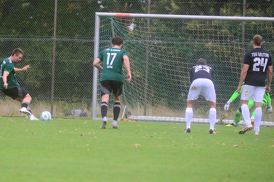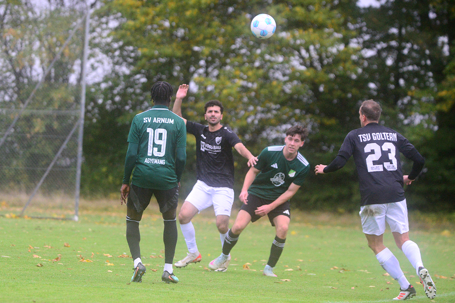 „Wir hätten auch sieben oder acht Tore erzielen können. Aber ich bin mit dem Ergebnis trotzdem sehr zufrieden“, sagte Maxi Abels, Trainer der SV Arnum, nach dem heutigen 4:0-Erfolg gegen den TSV Goltern. Nico Schneider verwandelte in der 33. Minute den an Maximilian Boser verursachten Foulelfmeter zum 1:0. Boser erhöhte zwei Minuten später auf 2:0. In der zweiten Hälfte traf Schneider in der 61. Minute auf 3:0, das 4:0 erzielte Boser in der 84. Minute. „Der Gegner war uns heute in allen Belangen unterlegen. Wir haben uns auch gar nicht auf die harte Gangart der Gäste eingelassen und einfach unser Spiel durchgezogen. Es war die überlegenste Leistung in dieser Saison“, sagte Abels.