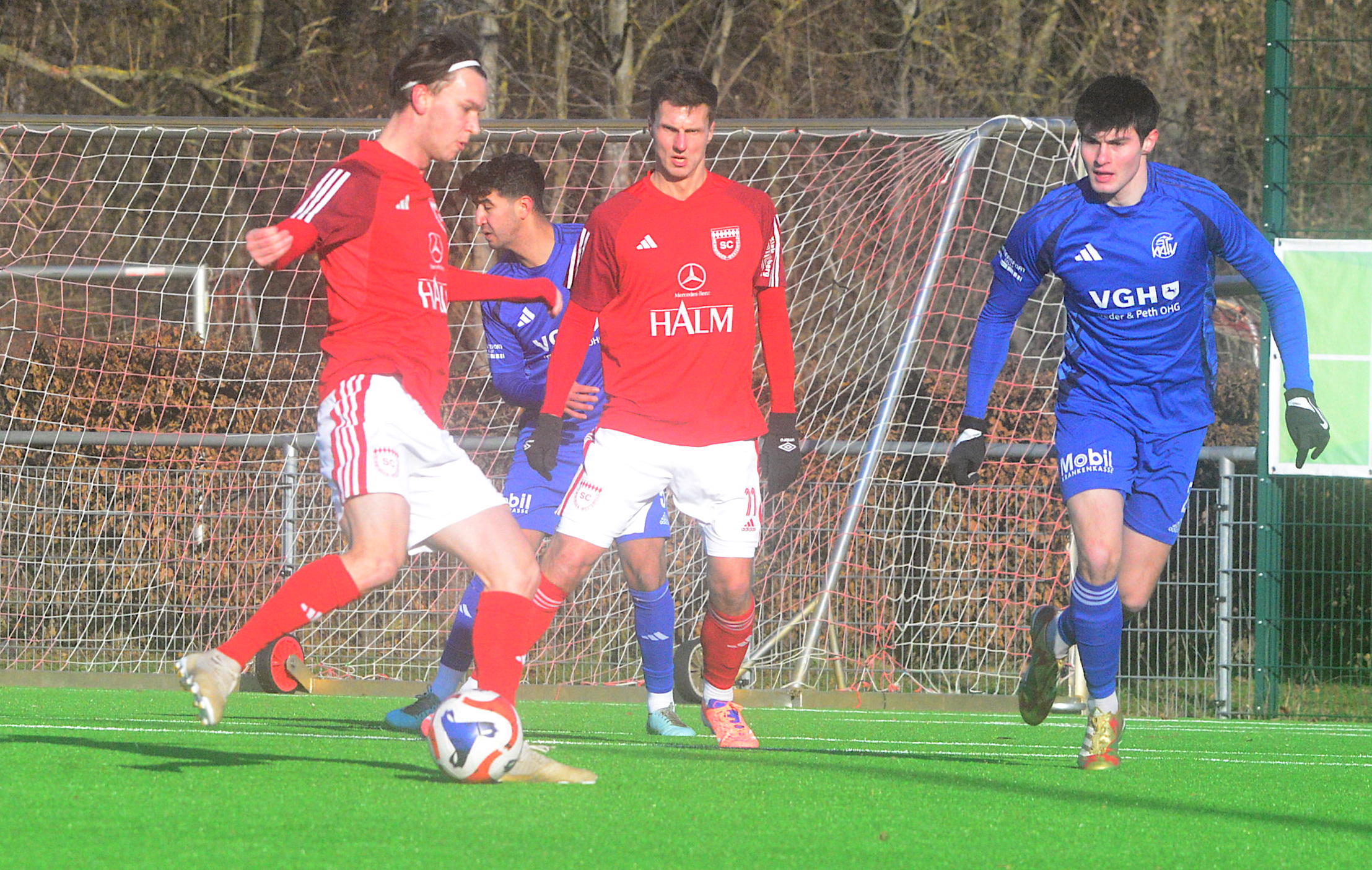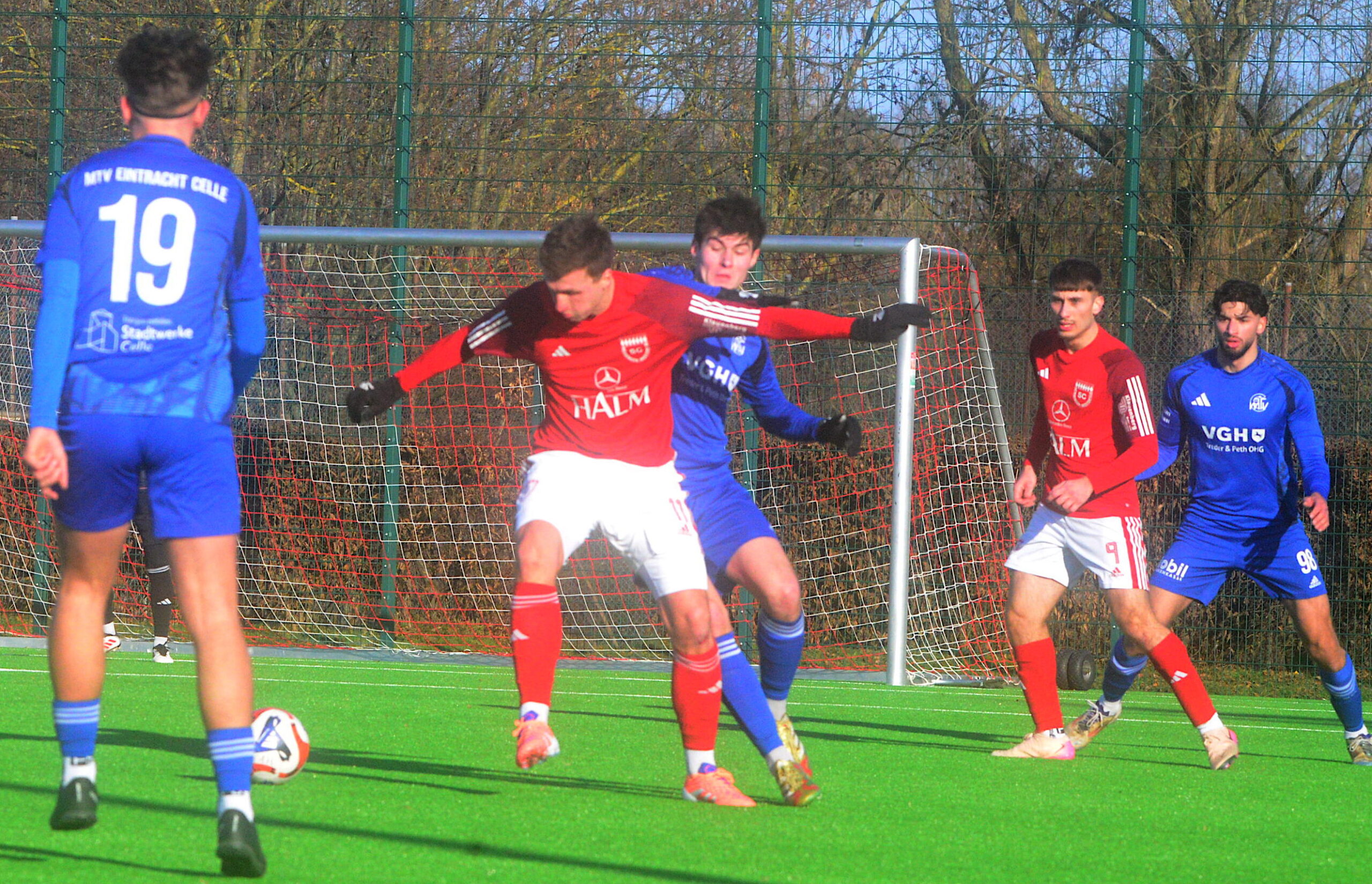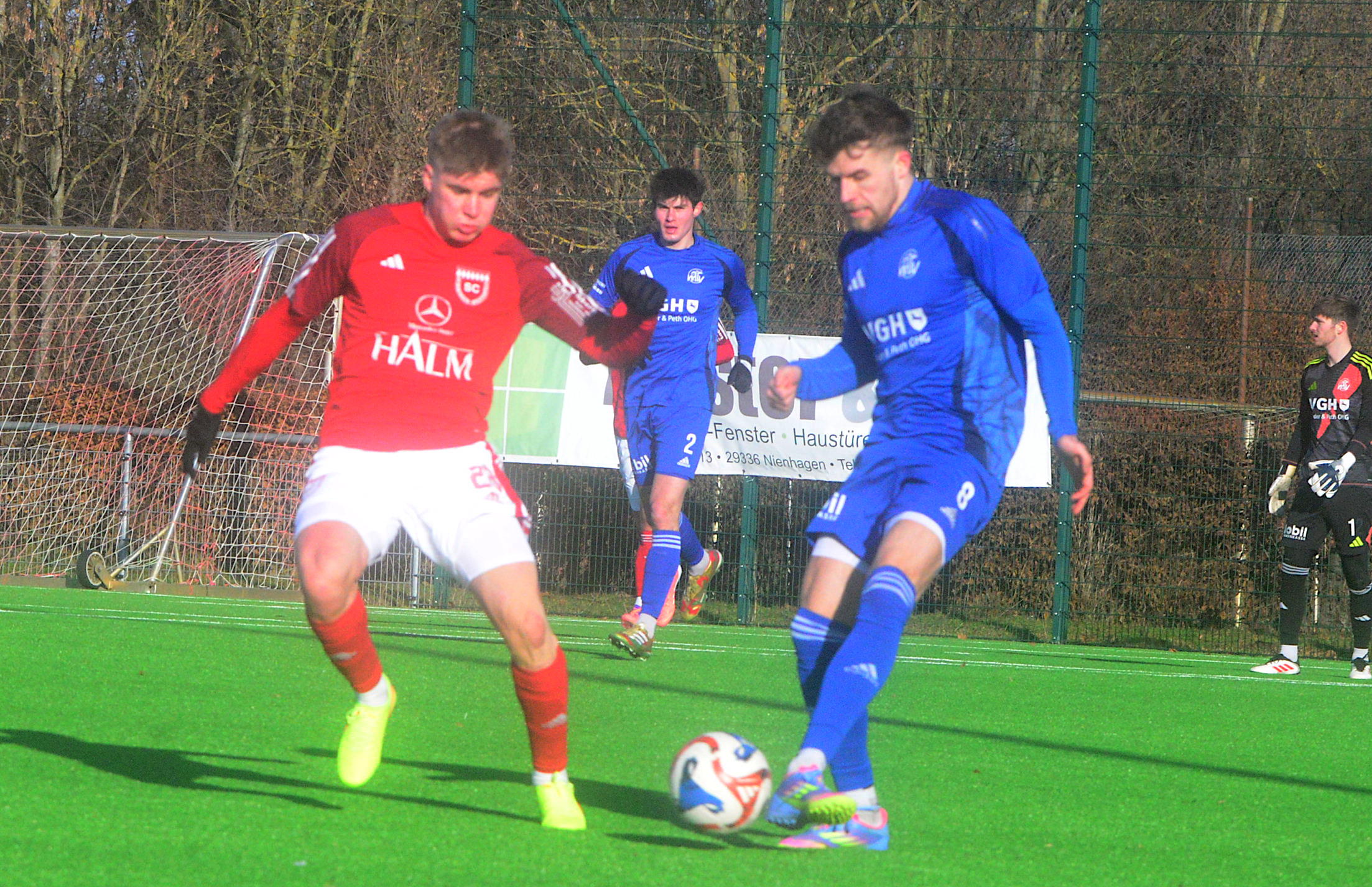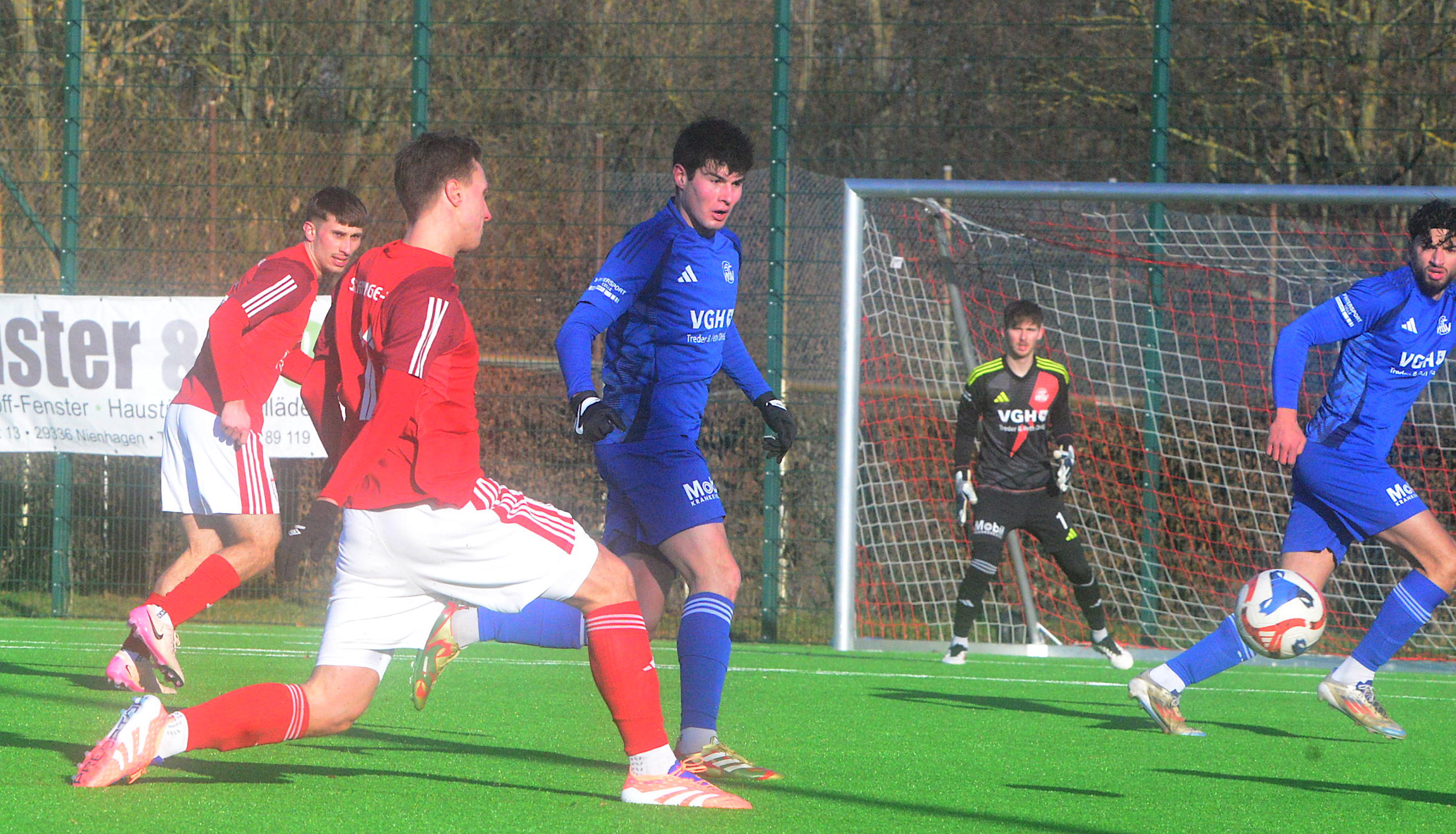 Das gestrige Blitzturnier auf dem Kunstrasenplatz in Hildesheim-Neuhof verlief‘ für den Kreisligisten SV Germania Grasdorf nicht optimal: Gegen den klassenhöheren Bezirksligsiten TSV Giesen gab es trotz der guten Leistung die 0:1-Niederlage. Gegen den Bezirksligisten VfR Ochtersum wurde danach 0:3 verloren, beide Spiele liefen jeweils über 45 Minuten. „Gegen den TSV Giesen waren wir gleichwertig,da war ein Unentschieden möglich“, sagte René Türk, Trainer der Grasdorfer Germania. Danach sei viel gewechselt worden. Damit sei die Mannschaft letztlich überfordert gewesen. Am heutigen Sonntag stellten sich die Grasdorfer Germanen beim Kreisligisten VfL Eintracht Hannover vor, und auch dieses Testspiel ging an den Gegner, beim Schlusspfiff lagern die Germanen durch die Gegentore in der 20., 76. und 78. Minute 0:3 zurück.